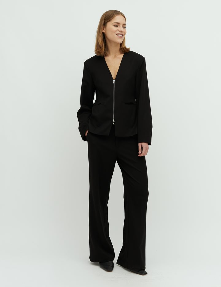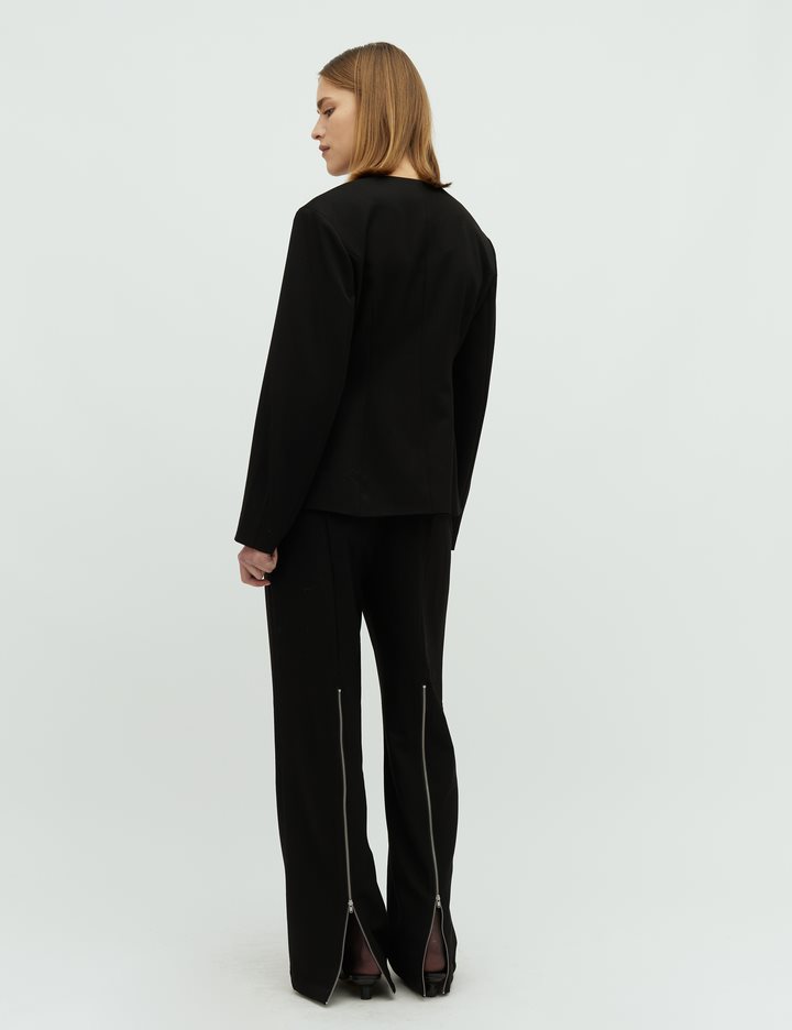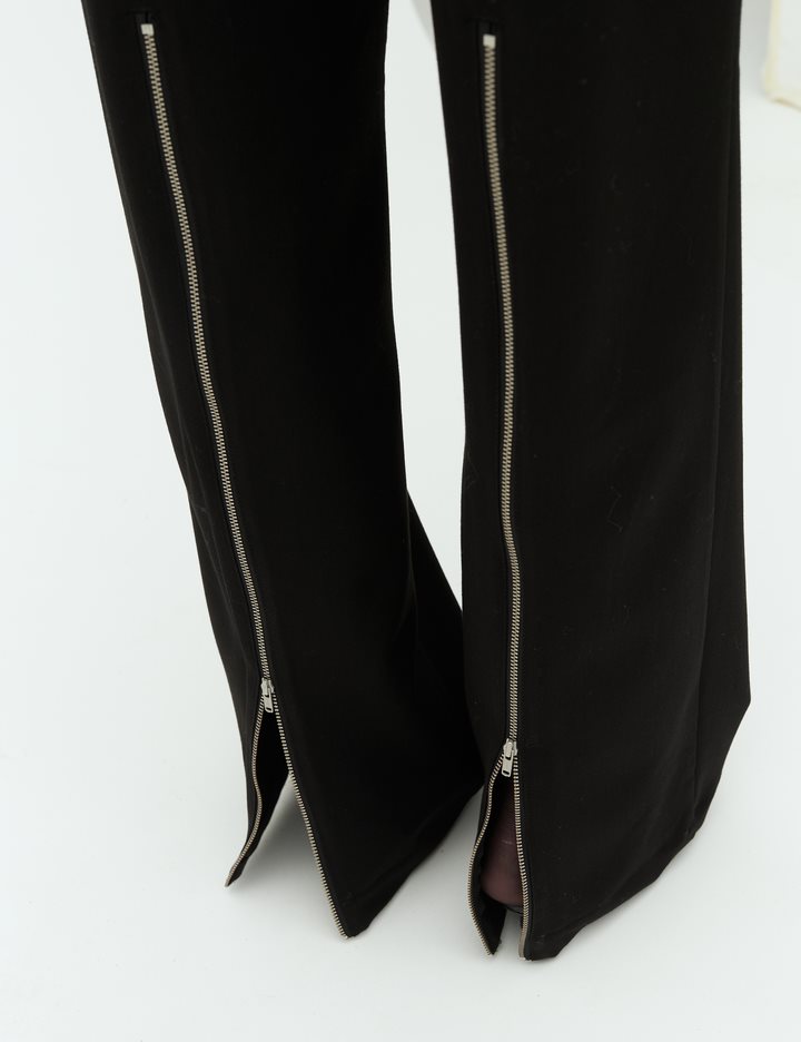 Pants with zippers at the back – Material: 78% Polyester, 17% Viscose, 5% Elastane- Closes with a zipper- Straight legs- Long zipper on the back of the leg- Color: BlackThe model is 174 cm tall and wears size S