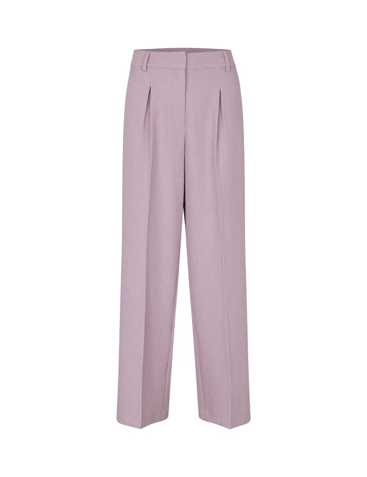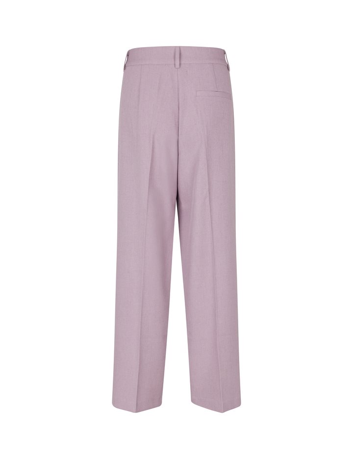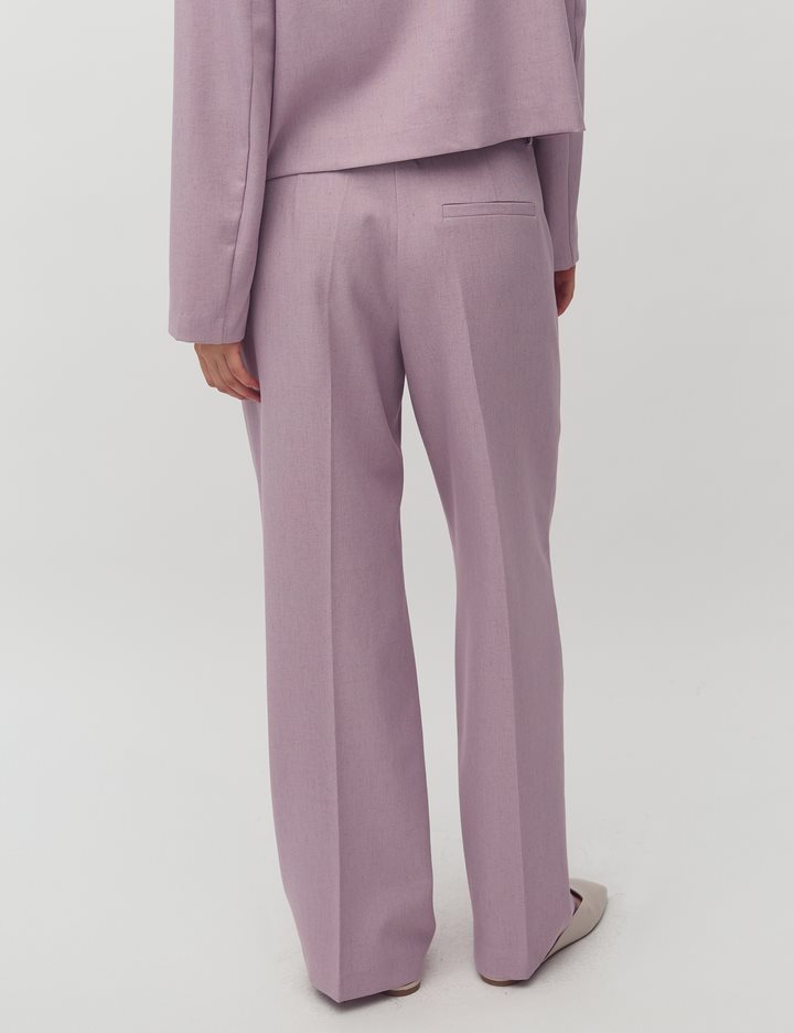 .Straight leg suit trouser.- Material: 89% Polyester, 7% Linen, 4% Elastane- Full length- Press folds- Regular rise- Belt loops- Side pockets- Relaxed fit