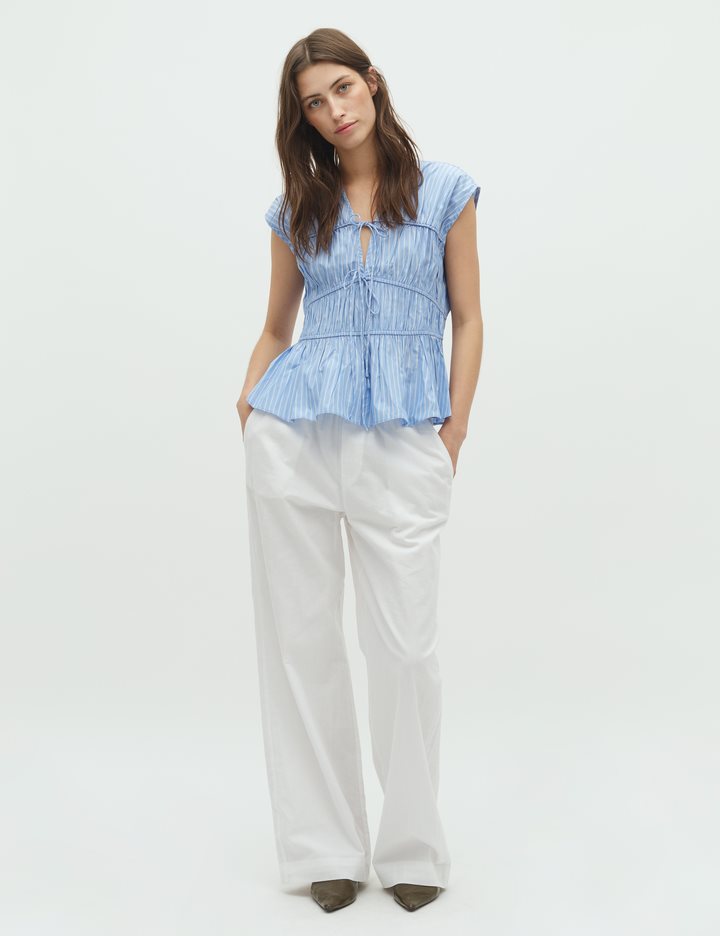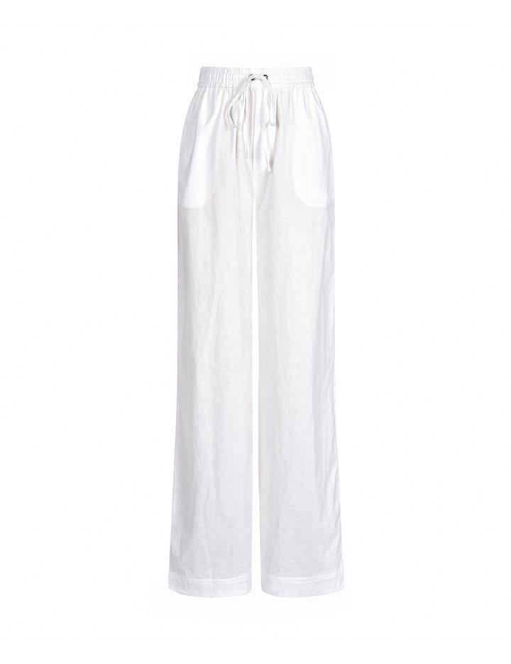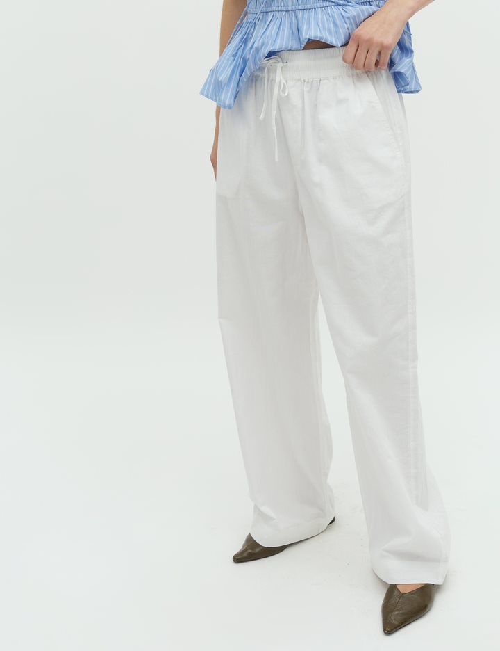 Linen trousers with pockets.- Material: 70% Cotton, 30% Linen- Full length- Tie waist- Side pockets- Loose fit- Wide legs