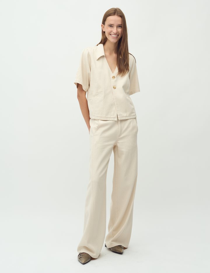 Wide leg trousers with side pockets.- Material: 100% Cotton- Wide legs- Side pockets- Soft quality- Back pocketsThe model is 176 cm tall and is wearing size S.