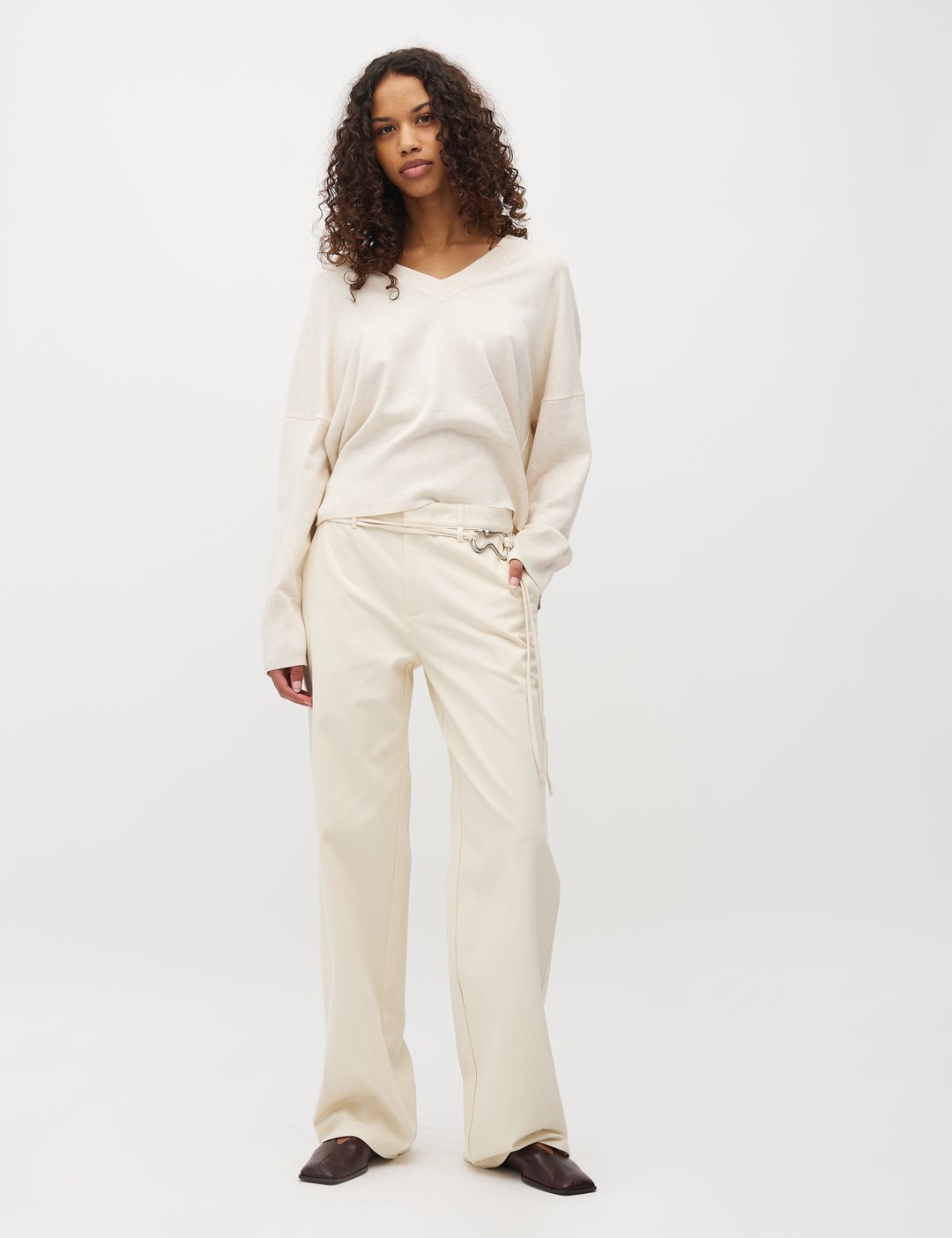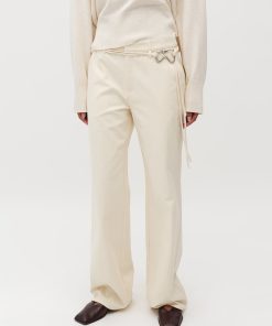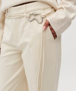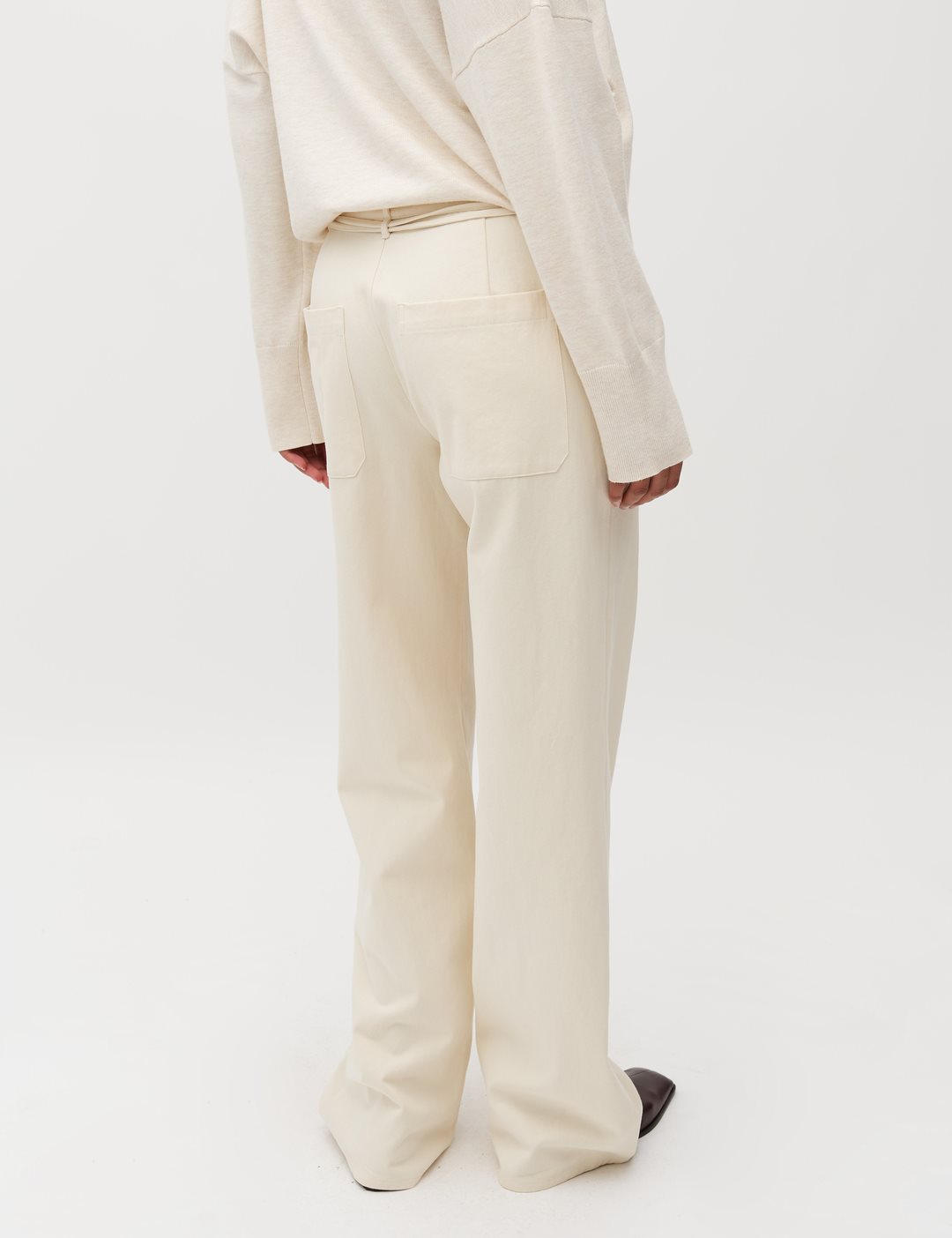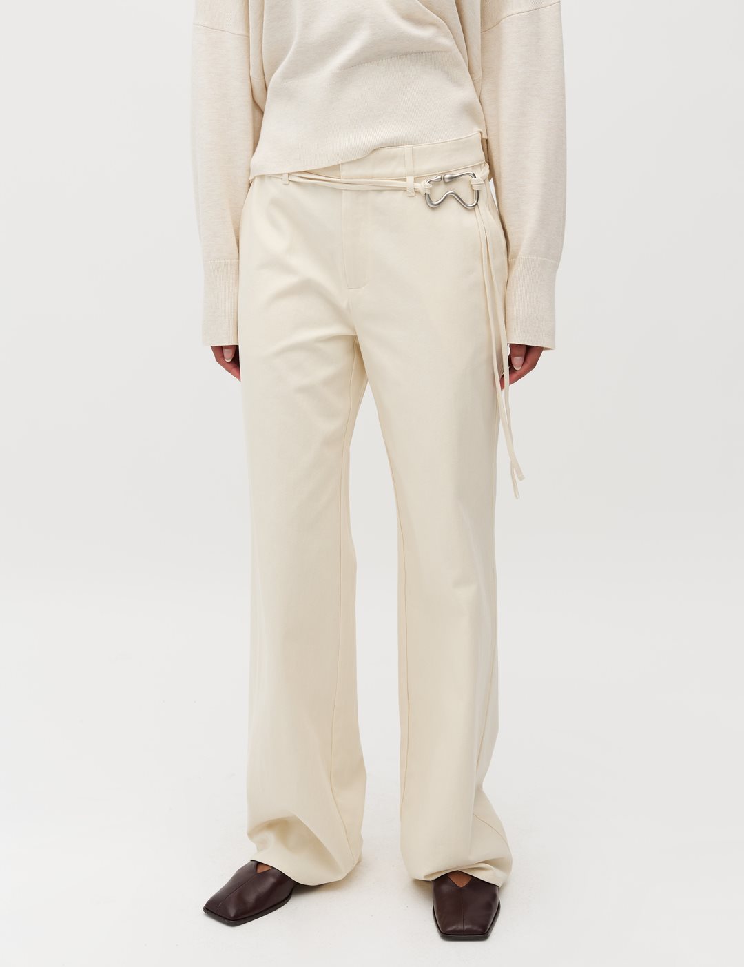 Loose pants with belt.- Material: 100% Cotton- Straight leg- High waist- Narrow belt with silver buckle- Closes with button and zipperThe model's height is 176 cm and she is wearing size S.