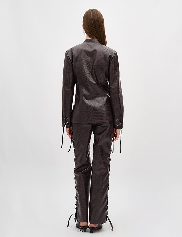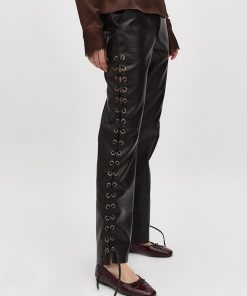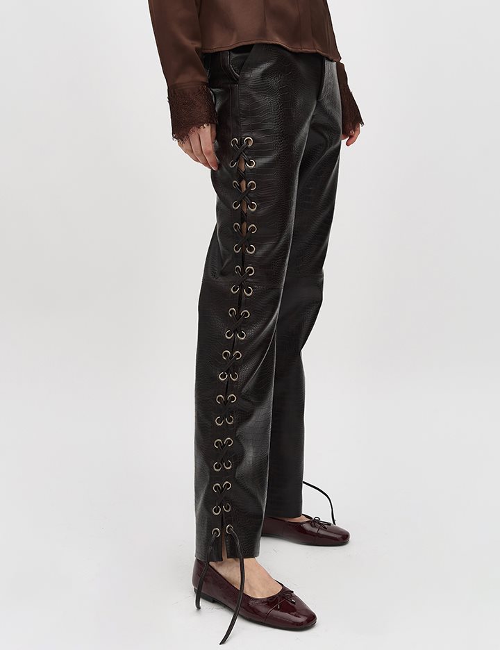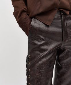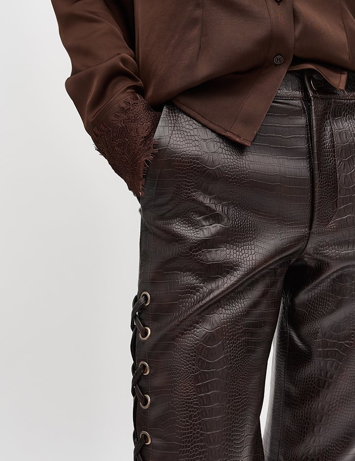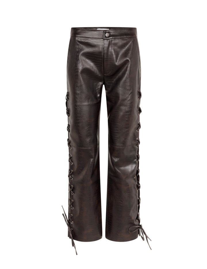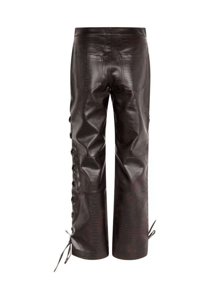 Faux leather pants with side laces.- Material: 100% Polyeurethane- Faux leather- Side laces- Structured quality- Color: Brown SnakeThe model is 176 cm tall and wears size S