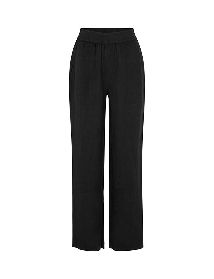 Trousers in a soft linen quality.- Material: 100% Linen- Wide legs- Classic fit- Elastic at the waist- Linen quality- Colour: Black