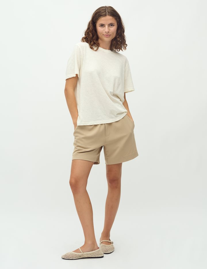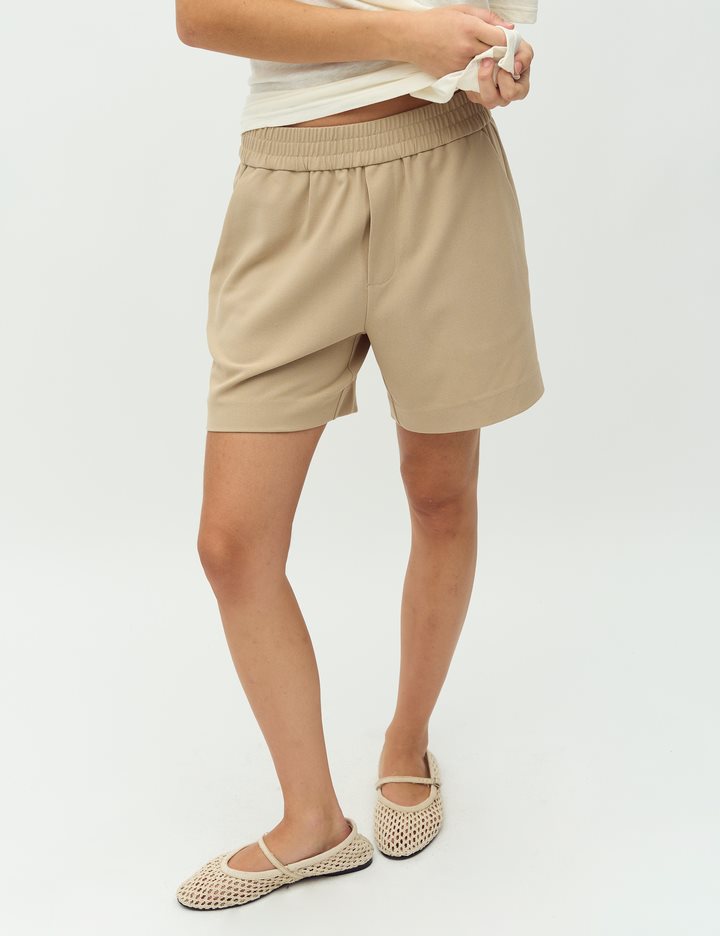 Short shorts with wide legs.- Material: 63% Recycled Polyester, 33% Viscose, 4% Elastane- Elastic waist- Side pockets- Welt pockets at the backThe model's height is 176 cm and she is wearing a size S.