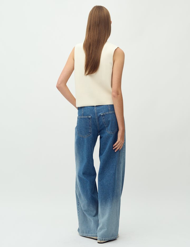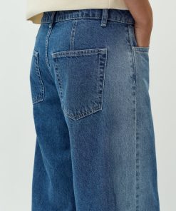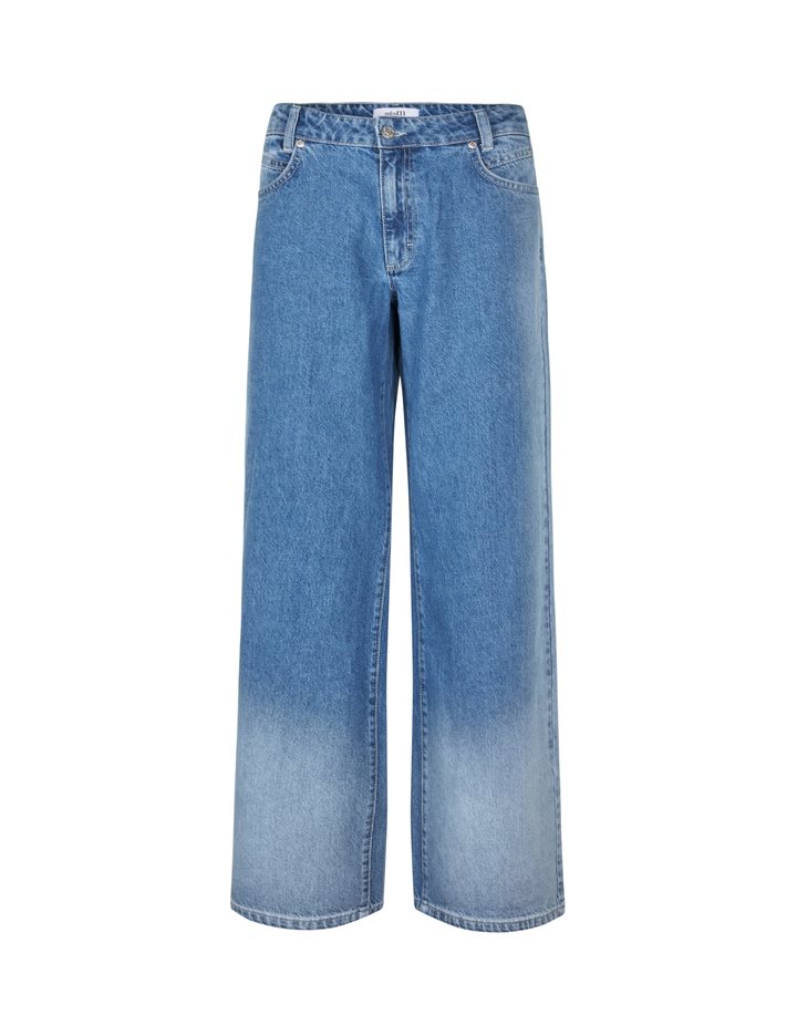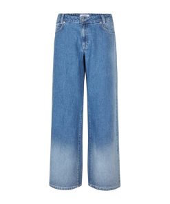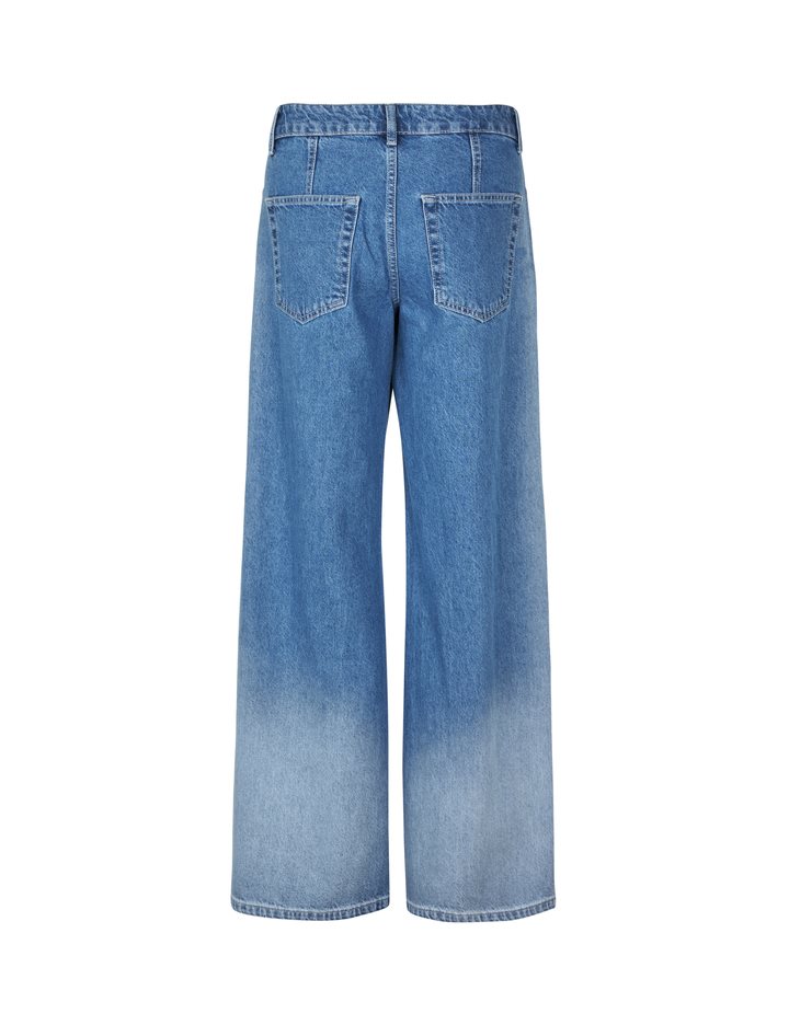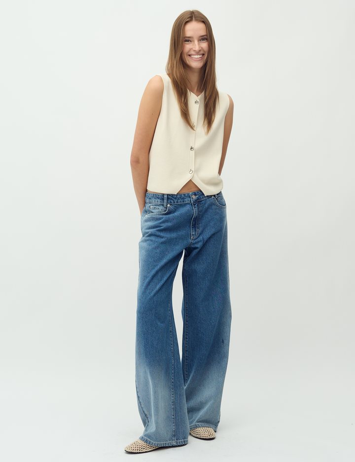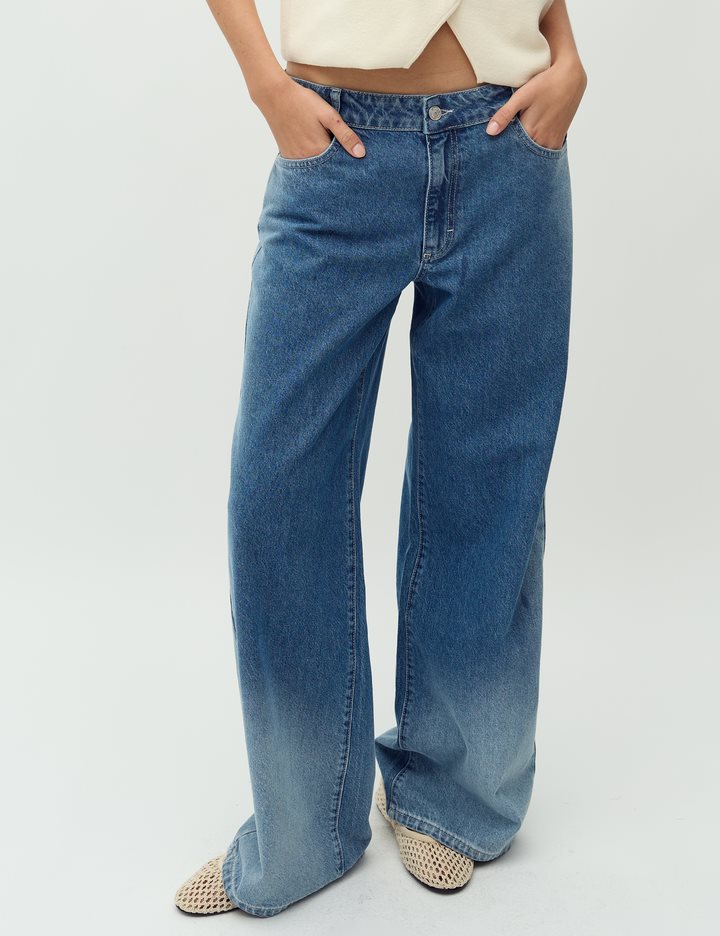 Mid waist jeans in a fading denim wash – Material: 100% Cotton- Mid Waist- Wide legs- 5 pockets- Fading denim washThe model is 176 cm and is wearing a size S.