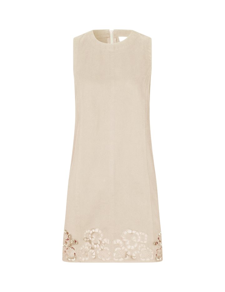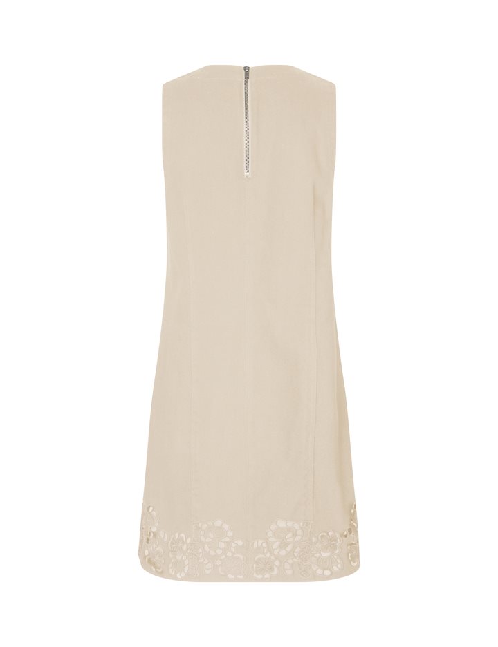 Dress with embroidery at the bottom.- Material: 100% Cotton- Loose fit- Midi length- Round neckline- Embroidery at the bottom of the dress- Closes with a zipper at the back