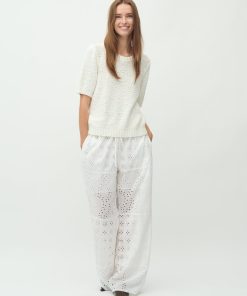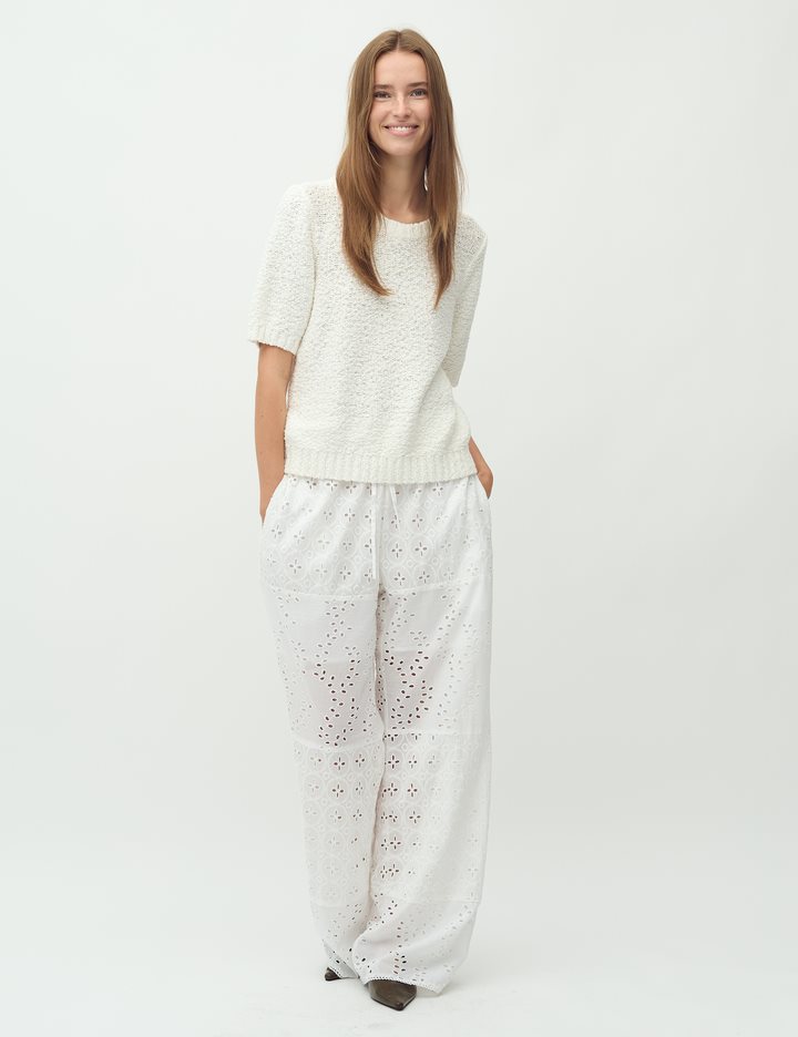 Trousers with embroidery and wide legs.- Material: 100% Cotton- Wide legs- Elastic and tie waist- Side pockets- Relaxed fitThe model's height is 176 cm and she is wearing a size S.