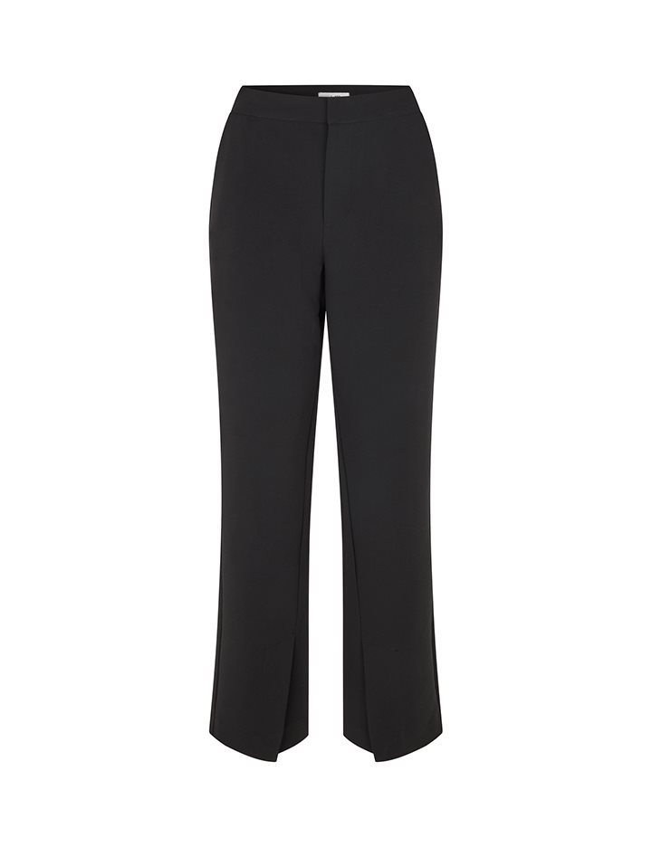 Woven pant with pockets and invisble upseam.- Material: 72% Polyester, 25% Viscose, 3% Elasthane- Flared legs- Splits to hem – Close-fitting, regular on the waist