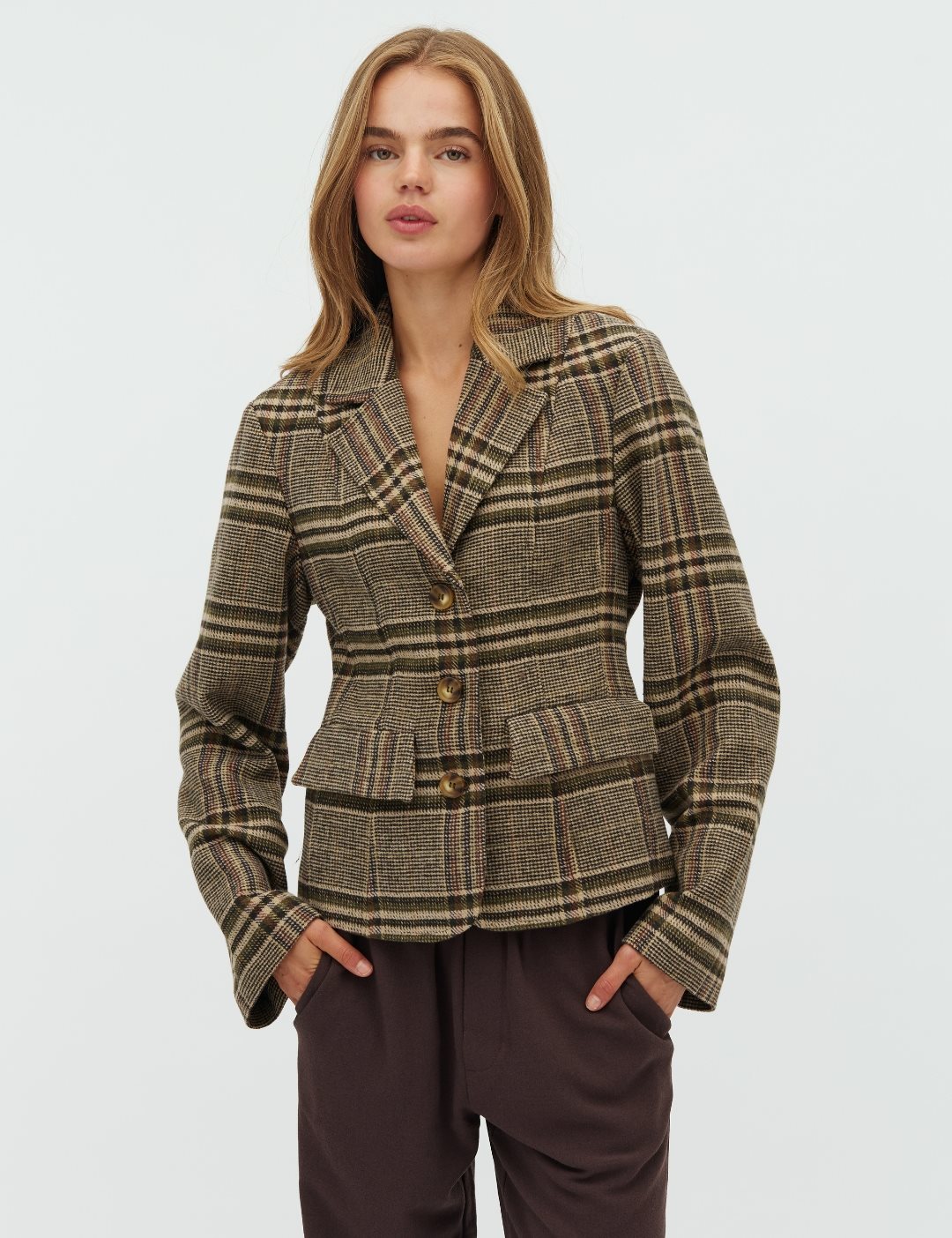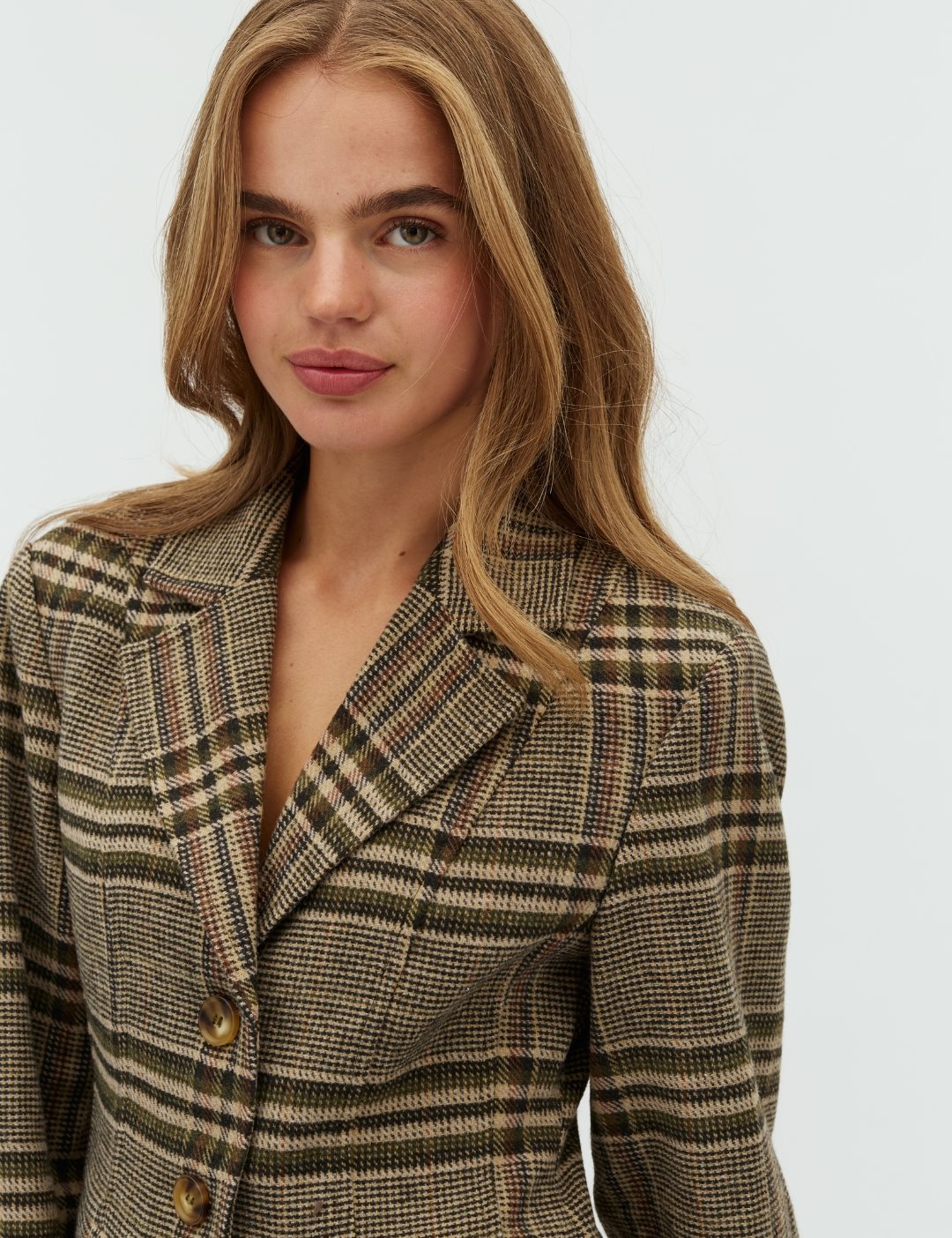 Checked blazer jackets.- Material: Outer: 100% Other fibers, Lining: 100 Polyester- Front pockets- Slim fit- Button closure- CheckedThe model's height is 176 cm and she is wearing a size S.