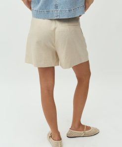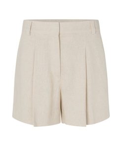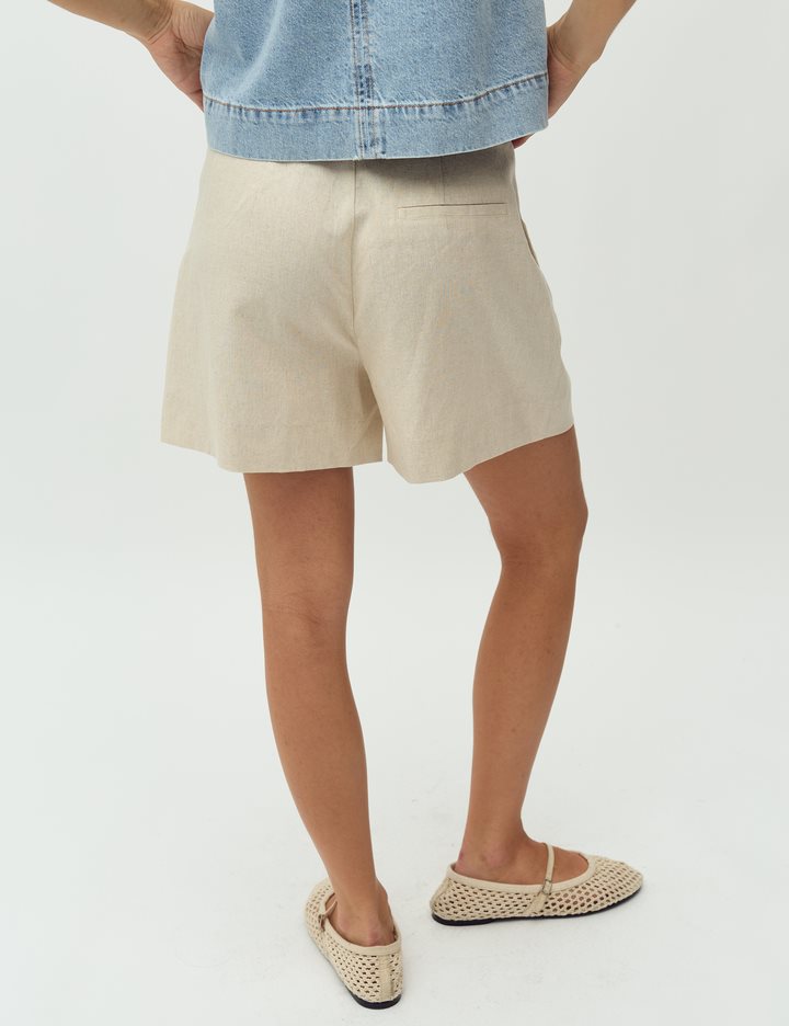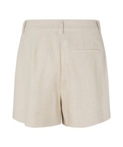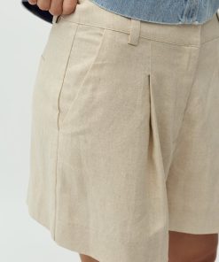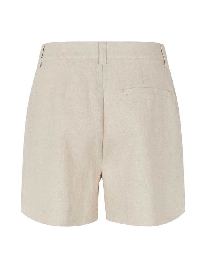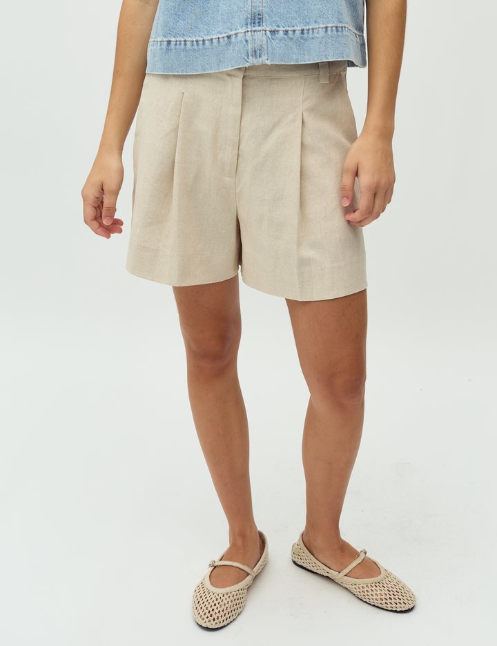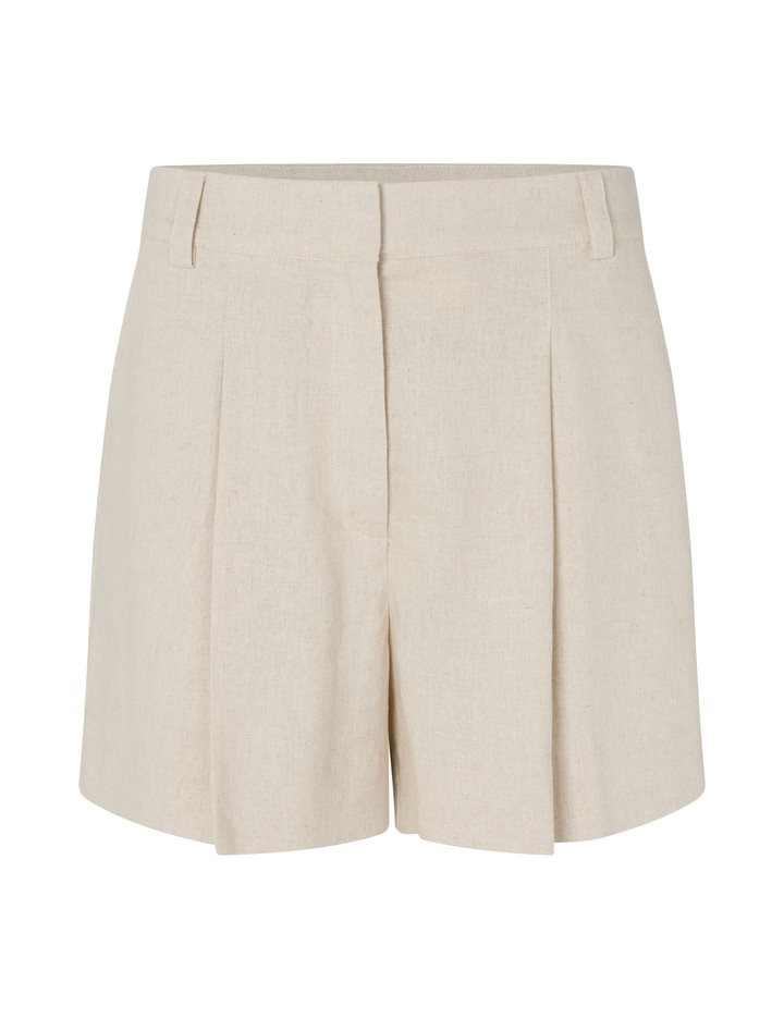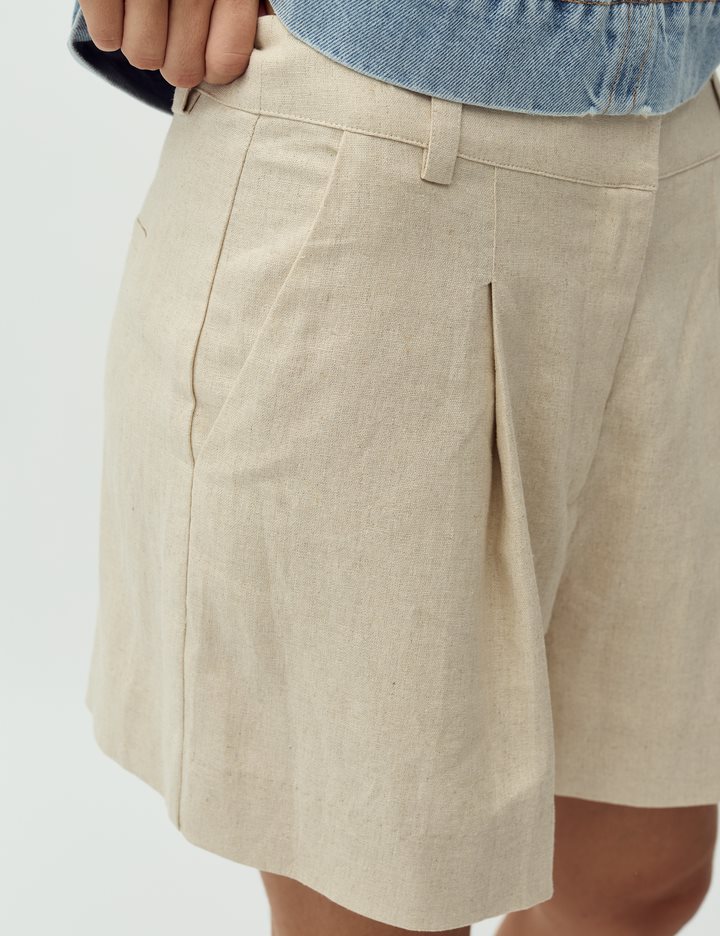 Woven shorts with pleats and press folds.- Material: 55% Linen, 45% Viscose- Press folds- Pleats- Belt straps- Zip flyThe model's height is 176 cm and she is wearing size S.
