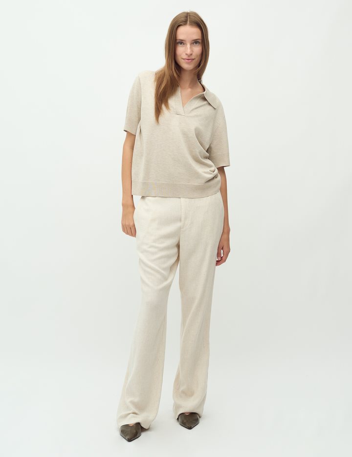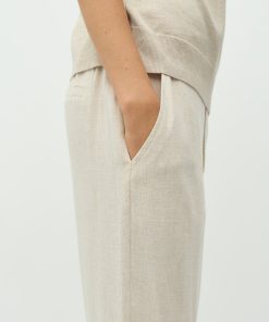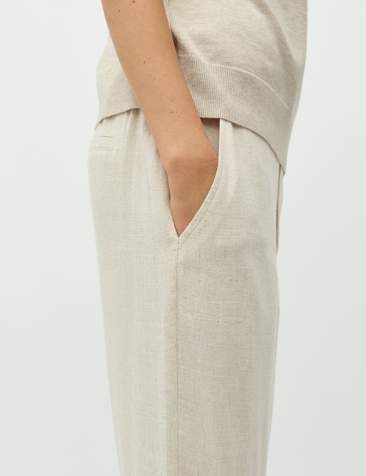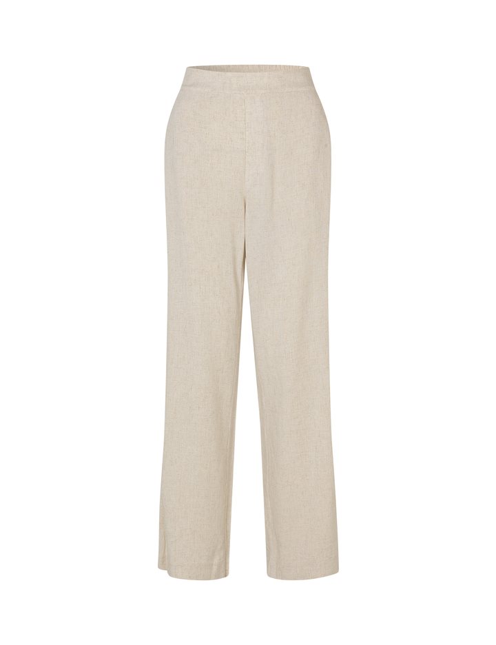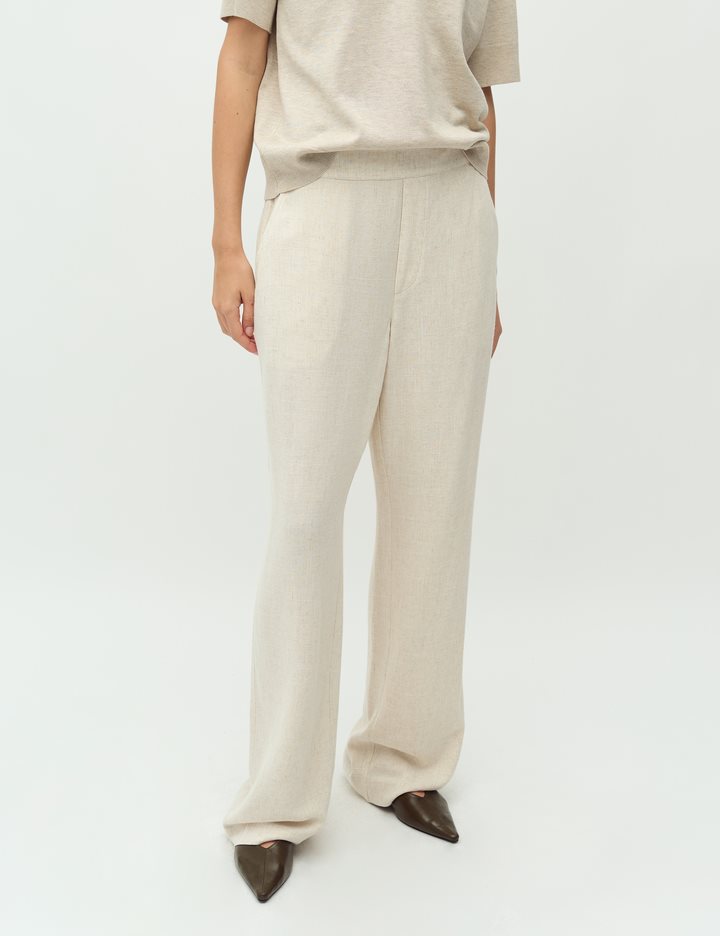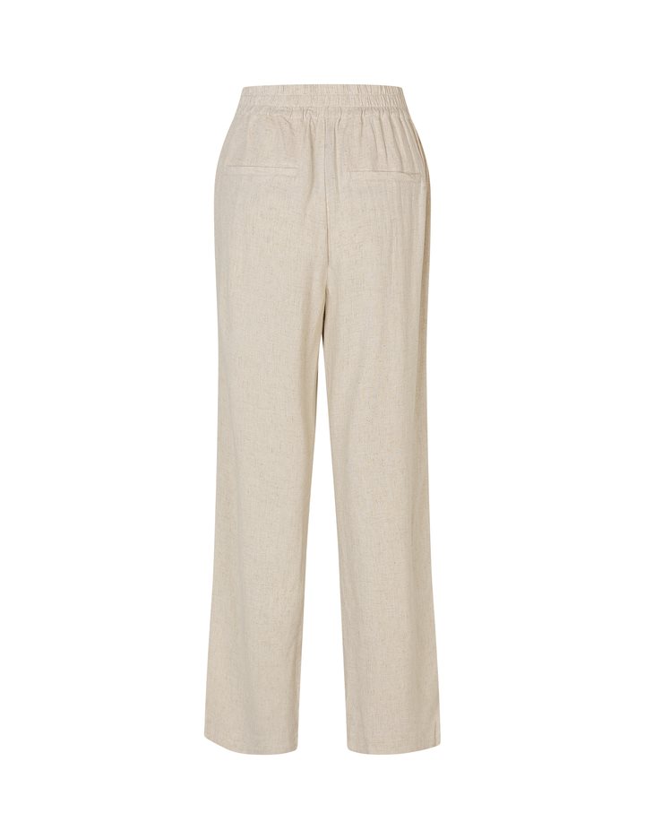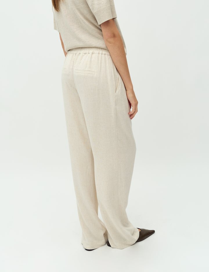 Trousers with elasticated back.- Material: 80% Viscose, 20% Linen- Straight legs- Elasticated waist at the back- Relaxed fit- Side pockets- Fake fly