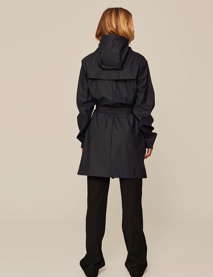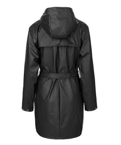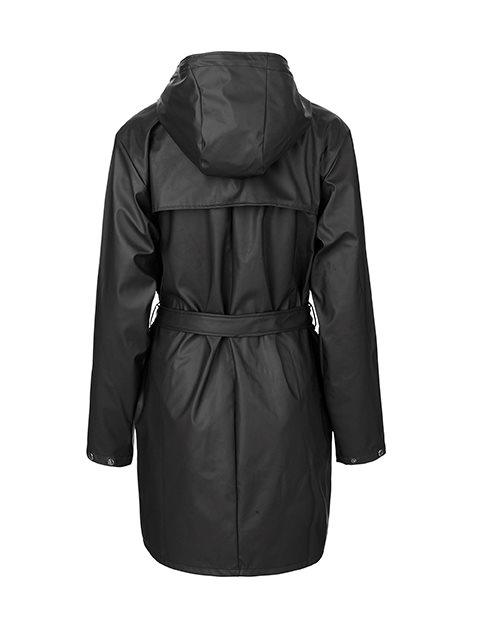 Festa Festival is a raincoat in a modern design from mbyM, with an adjustable waistband. – Material: 50% Polyester, 50% Polyurethane- Oversized fit- Long sleeves- Hood with constrict- Waistband- Large pockets with buttons in the front- Closes with buttons in the front- Midi-lenght- The jacket has air holes- Water resistant – This variant is blackStay dry wearing the mbyM raincoat with a water column of 3000 mm.