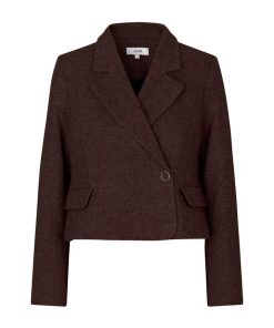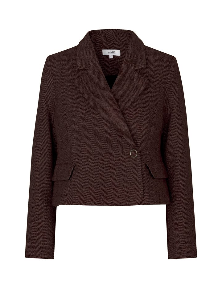 Short blazer jacket in wool quality.- Material: Shell: 70% Polyester, 30% Wool. Waistband: 100% Polyester- Long sleeves- Closes at the side with a button- Two pockets on the front- Lapel collar- Short lengthThe model's height is 176 cm and she is wearing a size S.