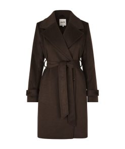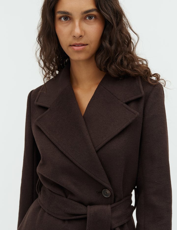 Nice transitional jacket.- Material: 50% Wool, 45% Polyester, 5% mixed fibers (waistband 100% Polyester)- Waist strap- Closes with 2 buttons- Slit at the back- Notch lapel- Button details on sleeves- Midi lengthThe model's height is 176 cm and she is wearing size S.