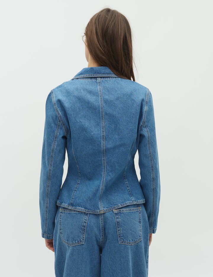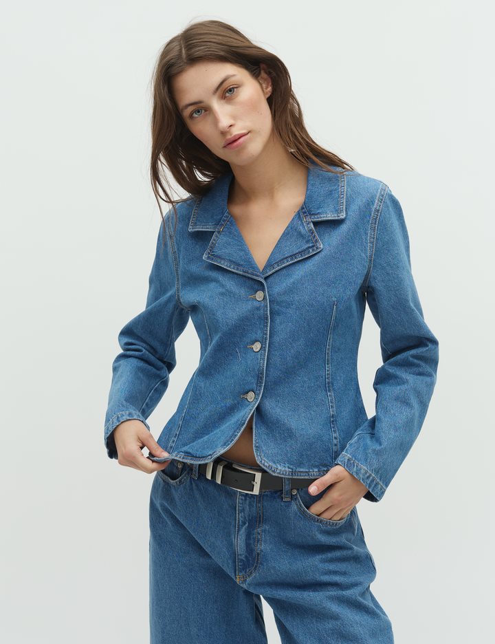 Denim blazer jacket.- Material: 100% Cotton- Long sleeves- Lapel collar- Button closure- Slim fit- Regular length