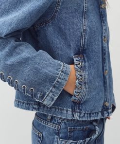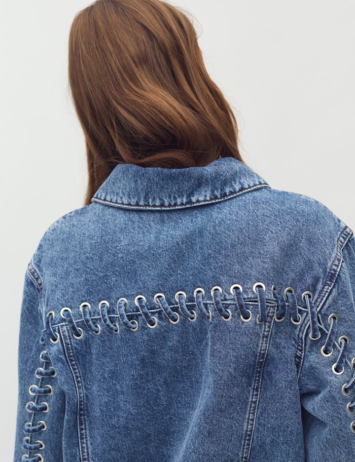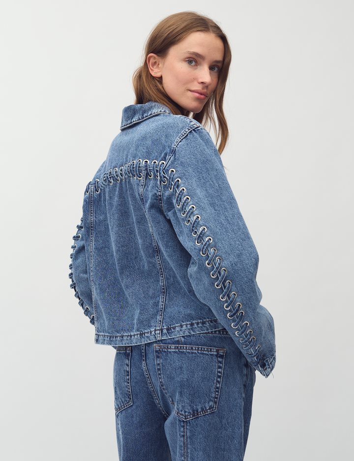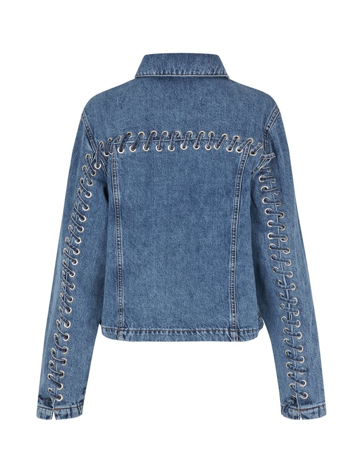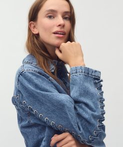 Denim jacket/shirt with lace details.- Material: 100% Cotton- Long sleeves- Shirt collar- Lace details on backside and pockets- Side pockets- Button closure- Relaxed fitThe model's height is 176 cm and she is wearing a size S.
