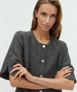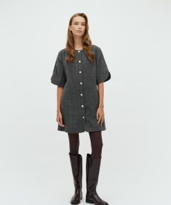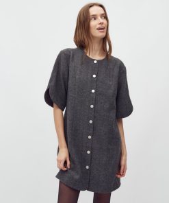 Herringbone mini dress with buttons.- Material: 92% Polyester, 5% Wool, 3% Elastane- Mini length- Loose fit- Short loose sleeves- Button closure- Thick fabricThe model's height is 176 cm and she is wearing a size S.