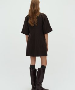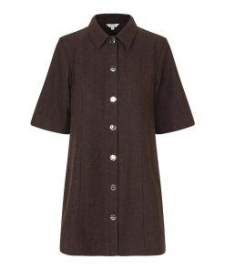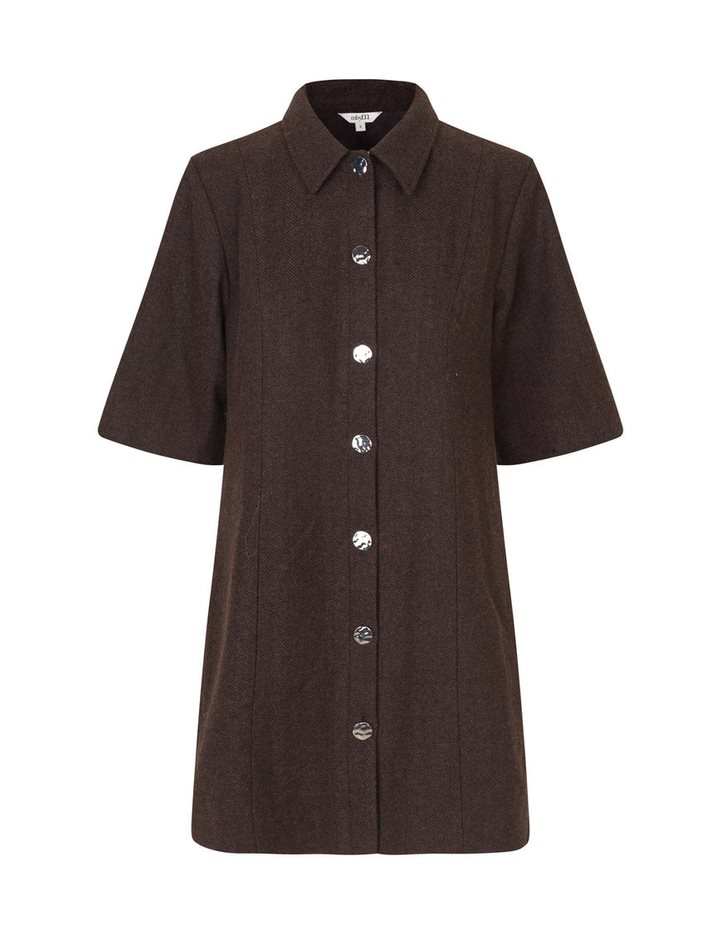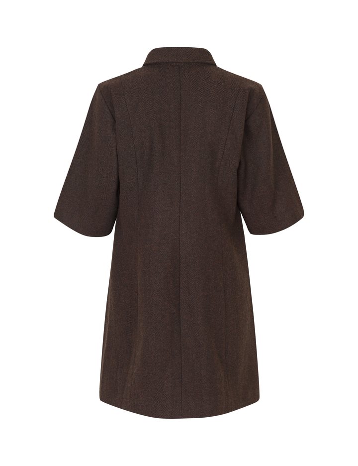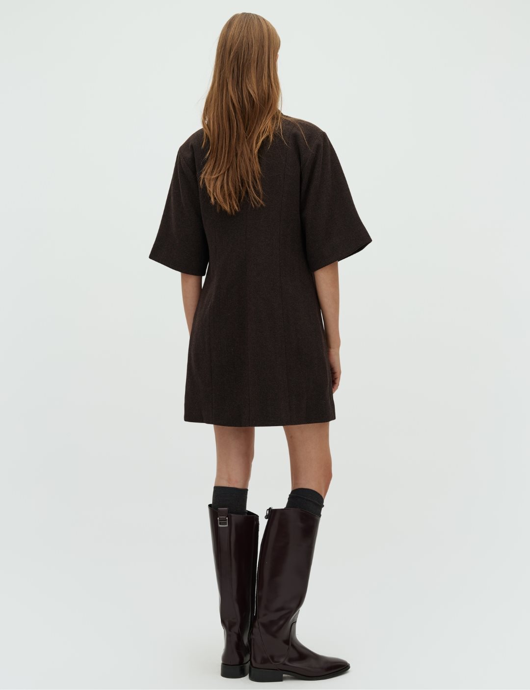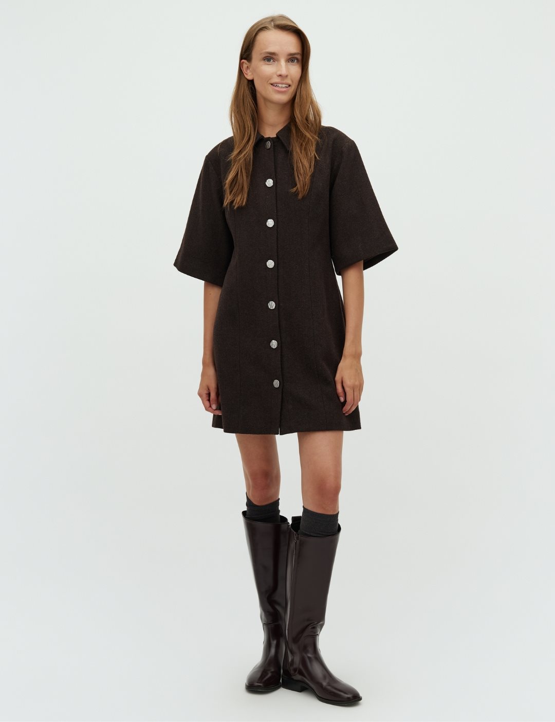 Dress in a wool quality.- Material: Shell: 70% Polyester, 30% Wool. Shell: 80% Polyester, 20% Cotton- Mini length- Loose fit- Short loose sleeves- Closes with silver buttons- Heavy qualityThe model's height is 176 cm and she is wearing size S.