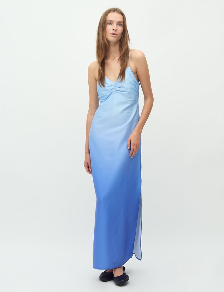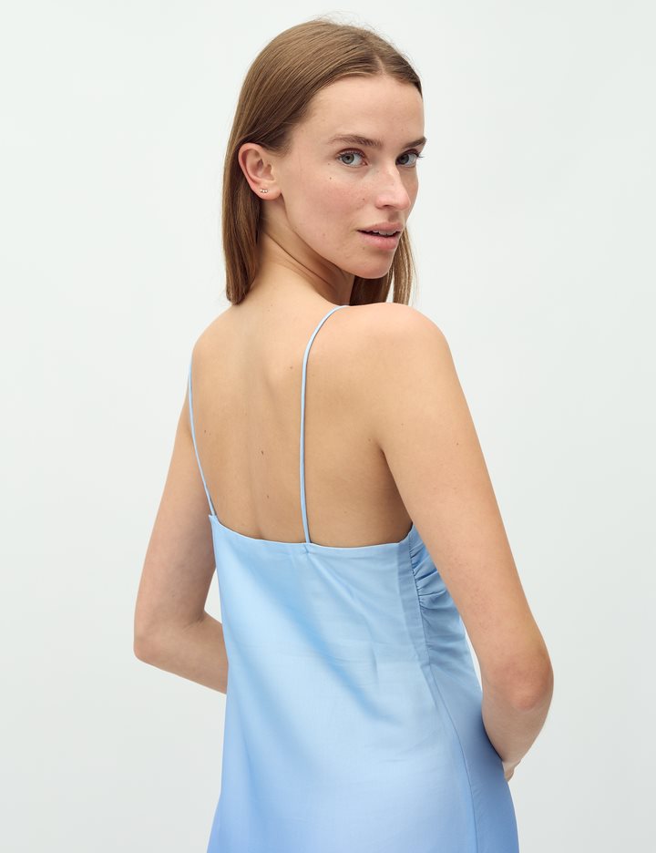 Maxi dress with thin straps.- Material: 52% Polyester, 48% Viscose- Maxi length- Side slit- Thin adjustable straps- V-neck- Side zipperThe model's height is 176 cm and she is wearing a size S.