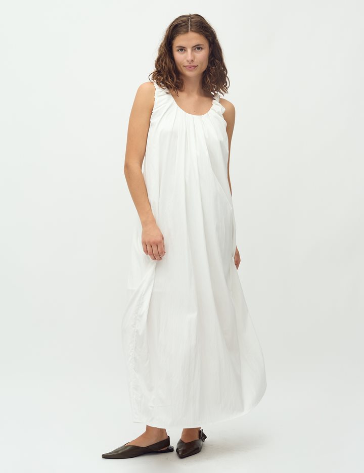 Maxi dress with straps and ruched detail- Material: 70% Cotton, 30% Polyester- Maxi length- Sleeveless- Relaxed fitThe model's height is 176cm and she is wearing a size S.