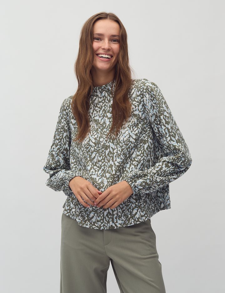 Printed blouse.- Material: 100% Ecovero Viscose- Loose fit- Button closure at the back- High neck- Elastic at the wrist