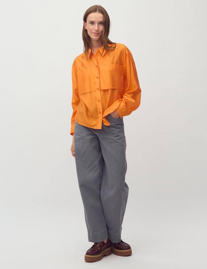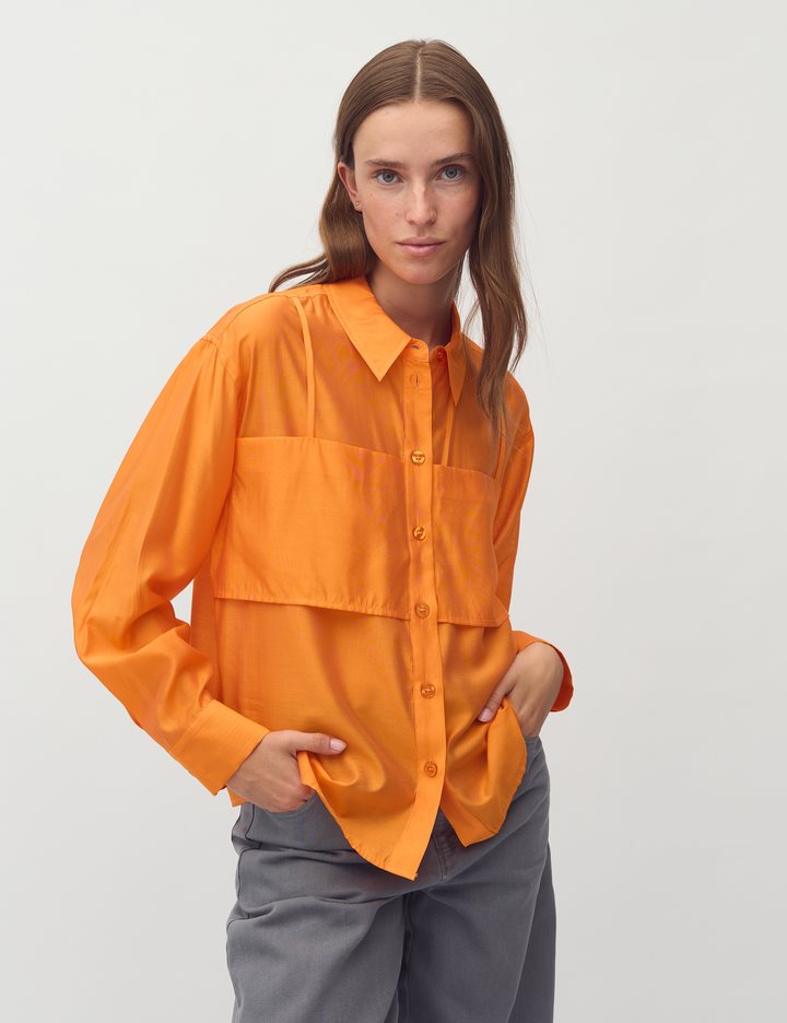 Shirt with details on the chest.- Material: 80% Viscose, 20% Polyester- Long sleeves with button cuffs- Details on the chest- Button closure- Shirt collar- Regular length- Relaxed fitThe model's height is 176 cm and she is wearing a size S.