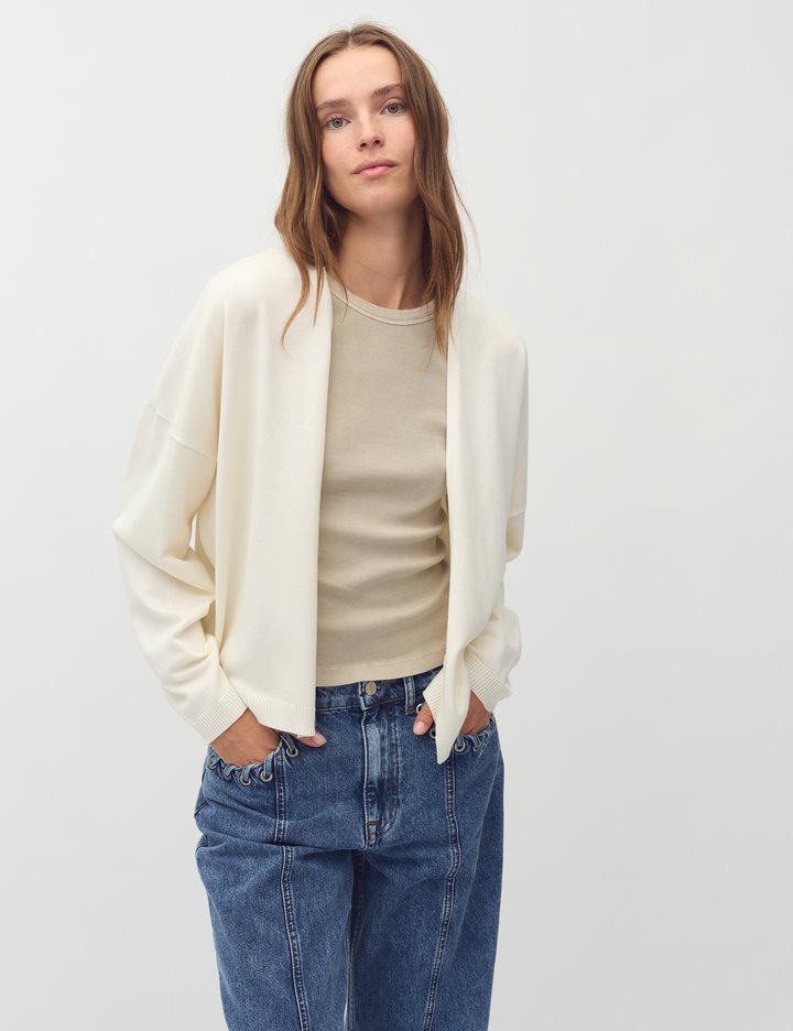 Knit cardigan in slightly oversized fit.- Material: 70% Viscose, 30% Polyester- Long sleeves with ribbed trim- Loose fit- Slight oversize fitThe model's height is 176 cm and she is wearing a size S.