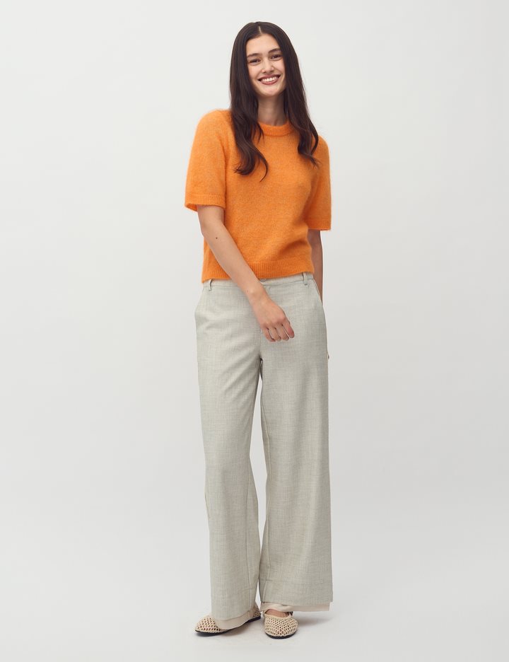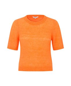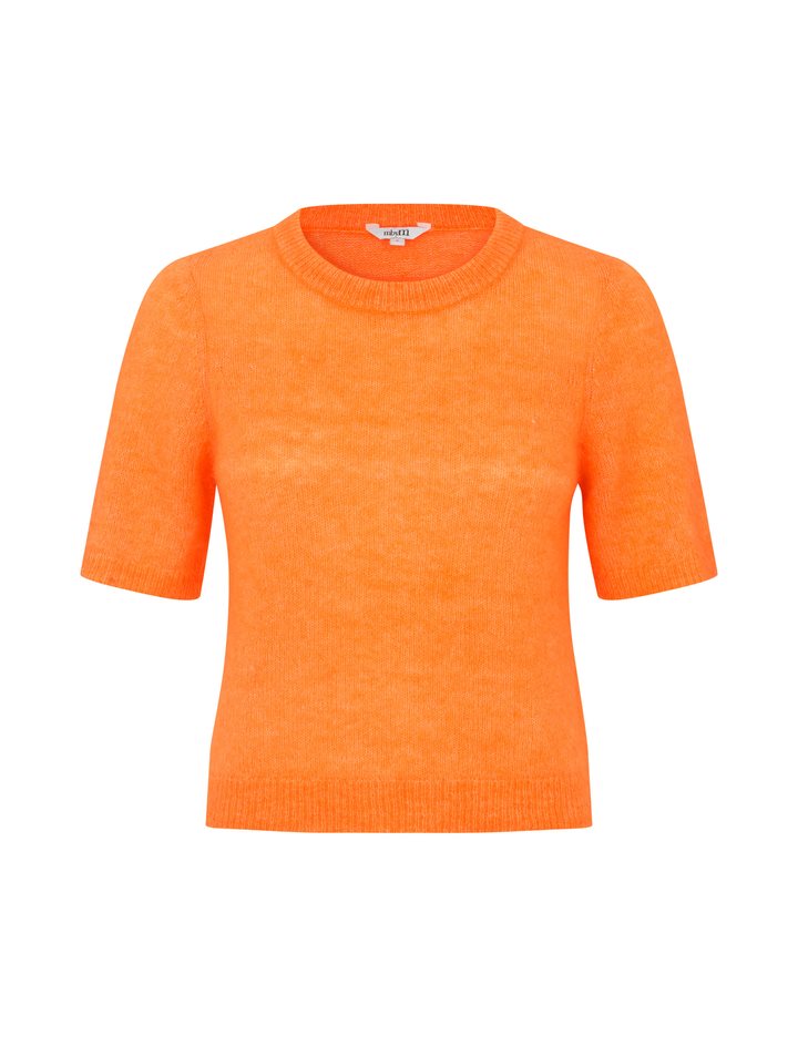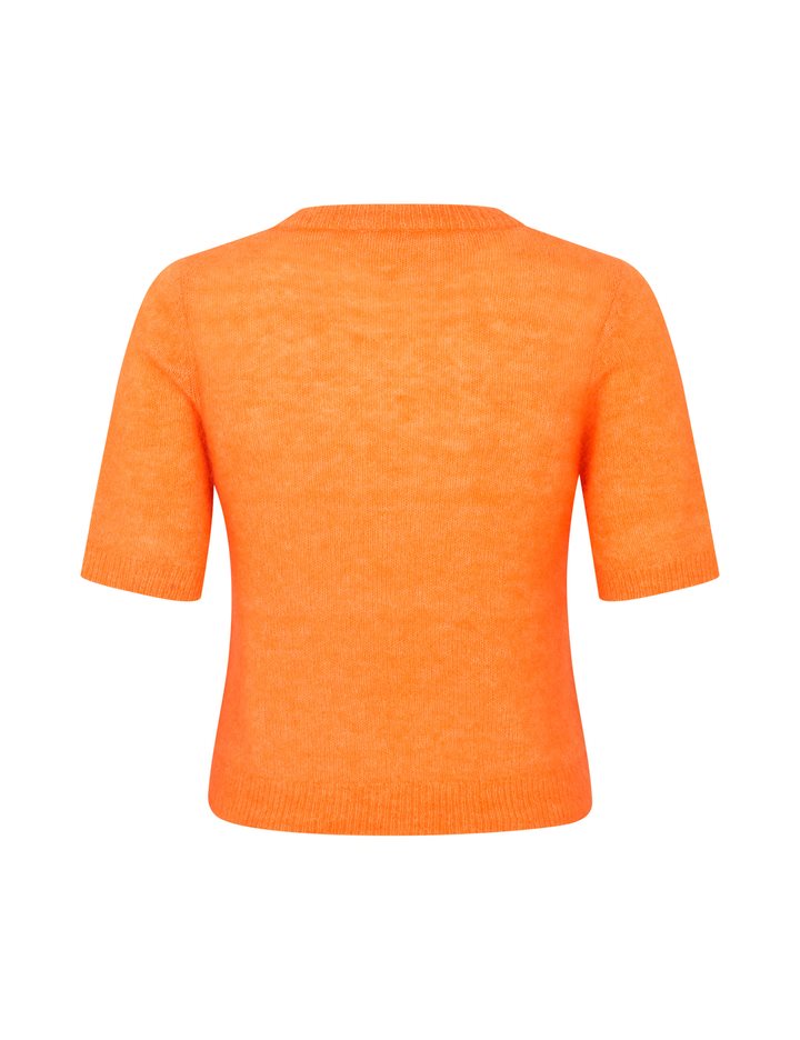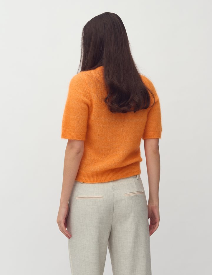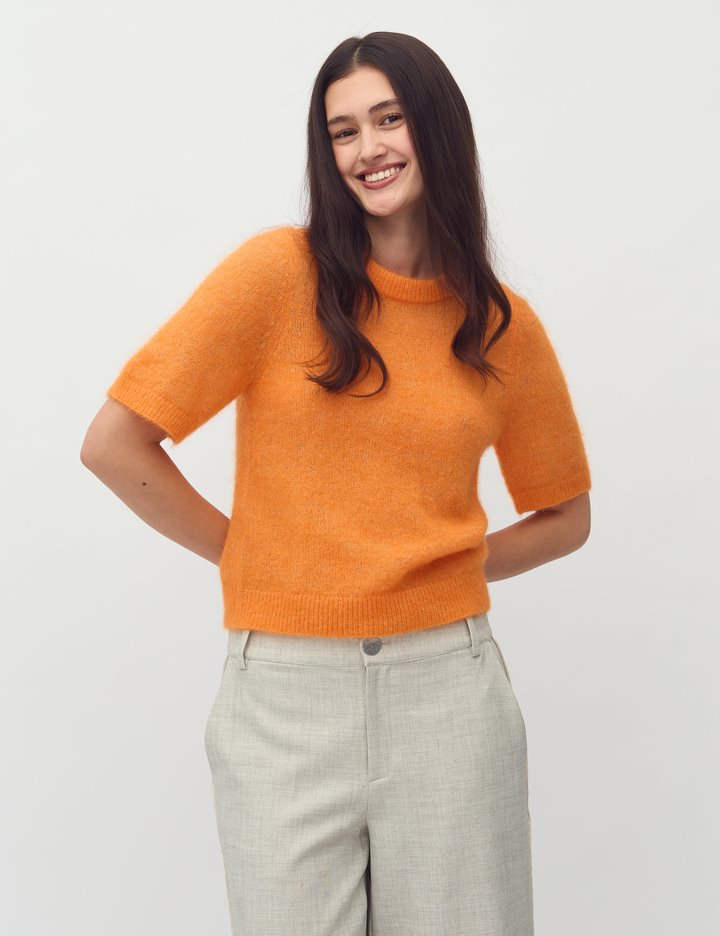 Thin short-sleeved knit- Material: 33% Nylon, 32% Wool, 32% Mohair, 3% Elastane- Short-sleeved- Round neckline- Loose fit- Soft wool mix- Color: Orange PeelThe model is 175 cm tall and is wearing size S