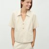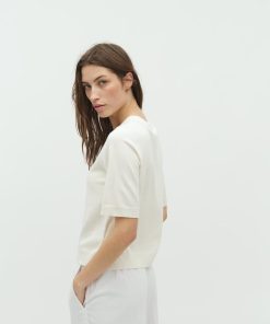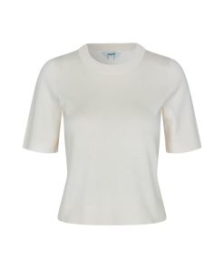 Thin knit sweater with short sleeves.- Material: 70% Viscose, 30% Polyester- Round neck- Normal length- Relaxed fit- Short sleeves with ribbed trim- Ribbed hems- Color: SugarThe height of the model is 175 cm and she is wearing a size S.