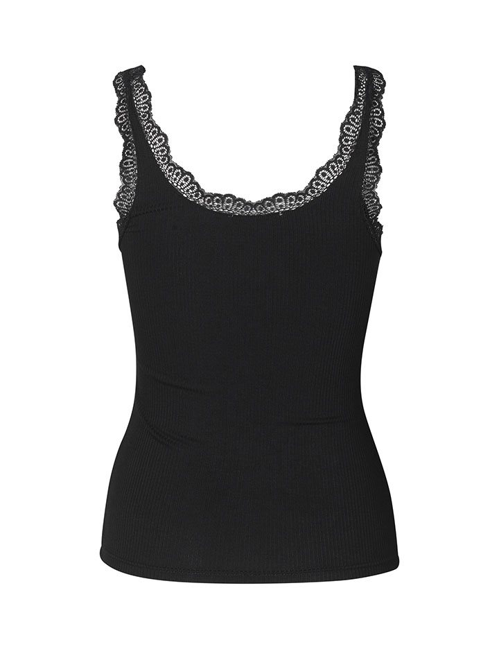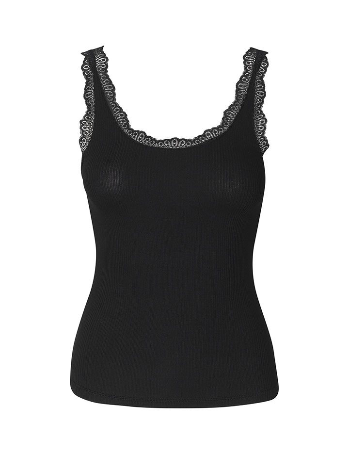 Simple top with lace- Material: 93% Viscose, 7% Elastane- Strap with lace- Tight fitting- Round neckline- Color: Black