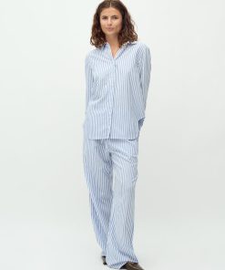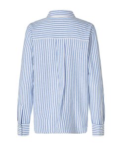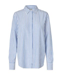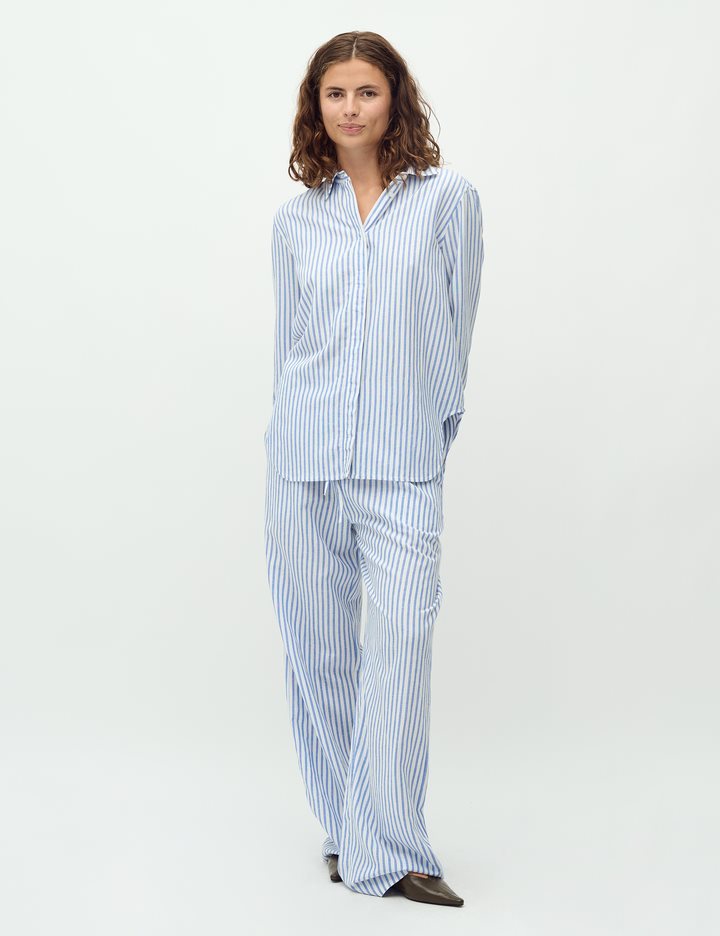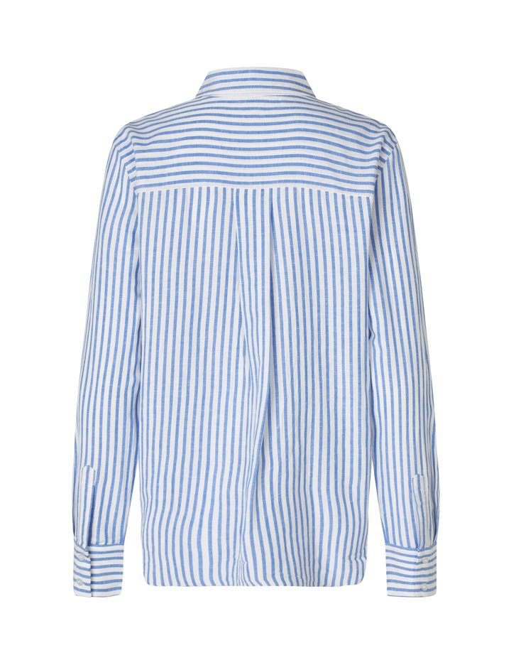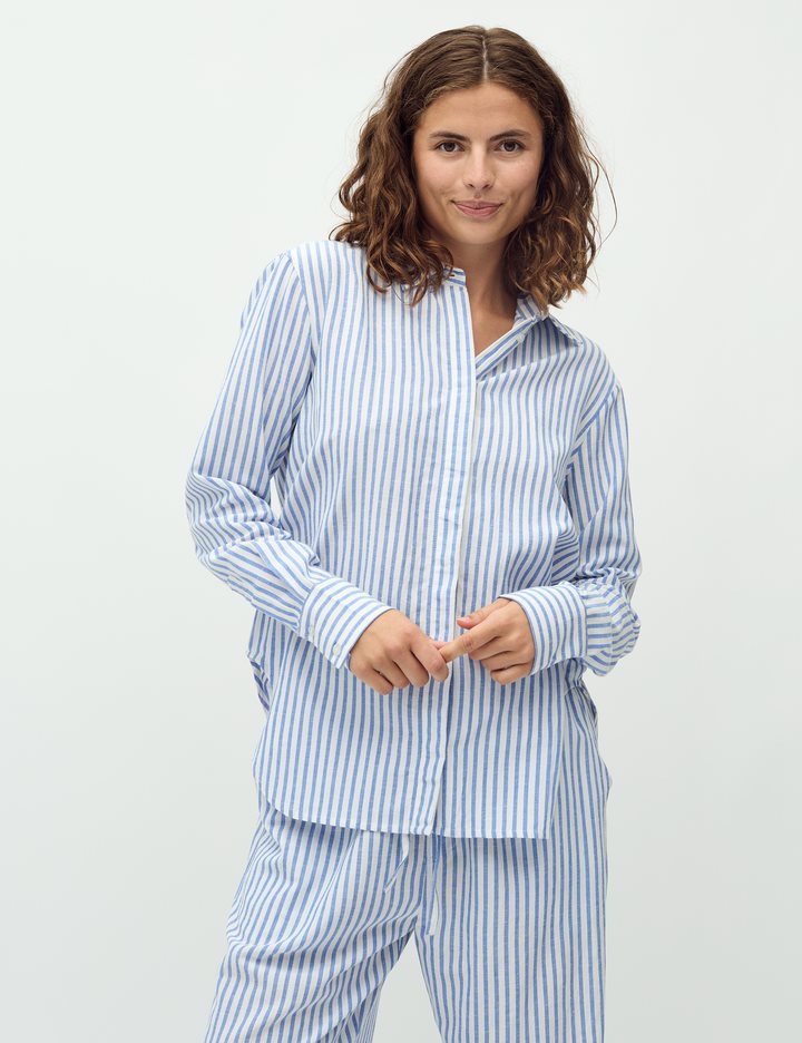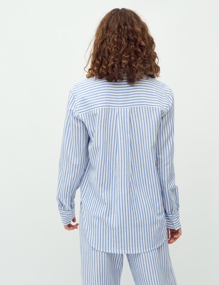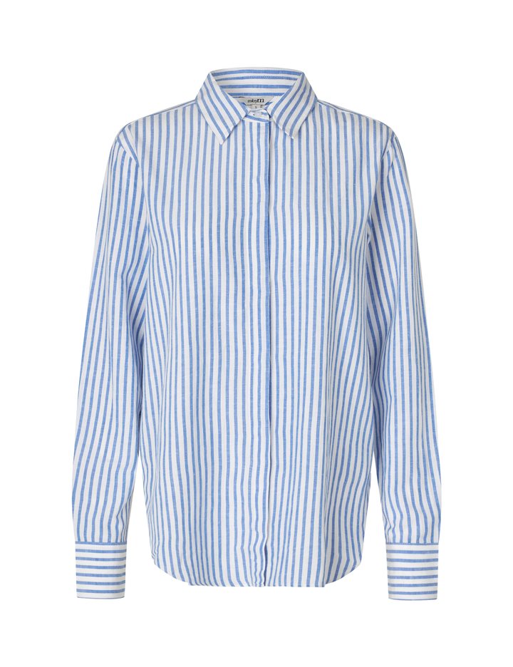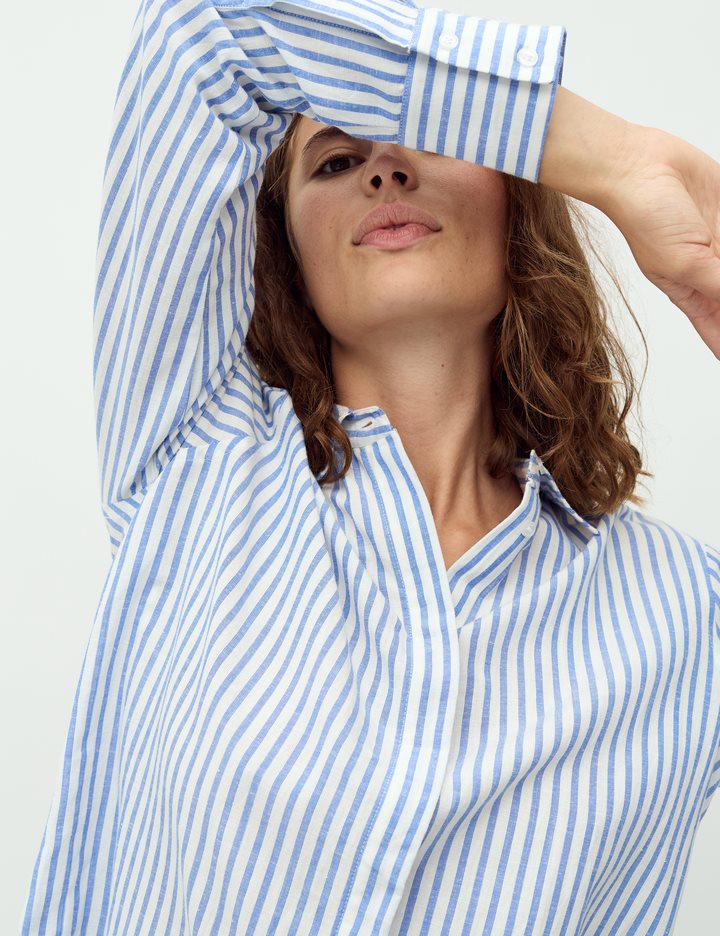 Basic linen shirt with fine details.- Material: 55% Viscose, 30% Cotton, 15% Linen- Long sleeves- Regular fit- Classic shirt collar- Hidden button closure- StripedThe model's height is 176 cm and she is wearing a size S.