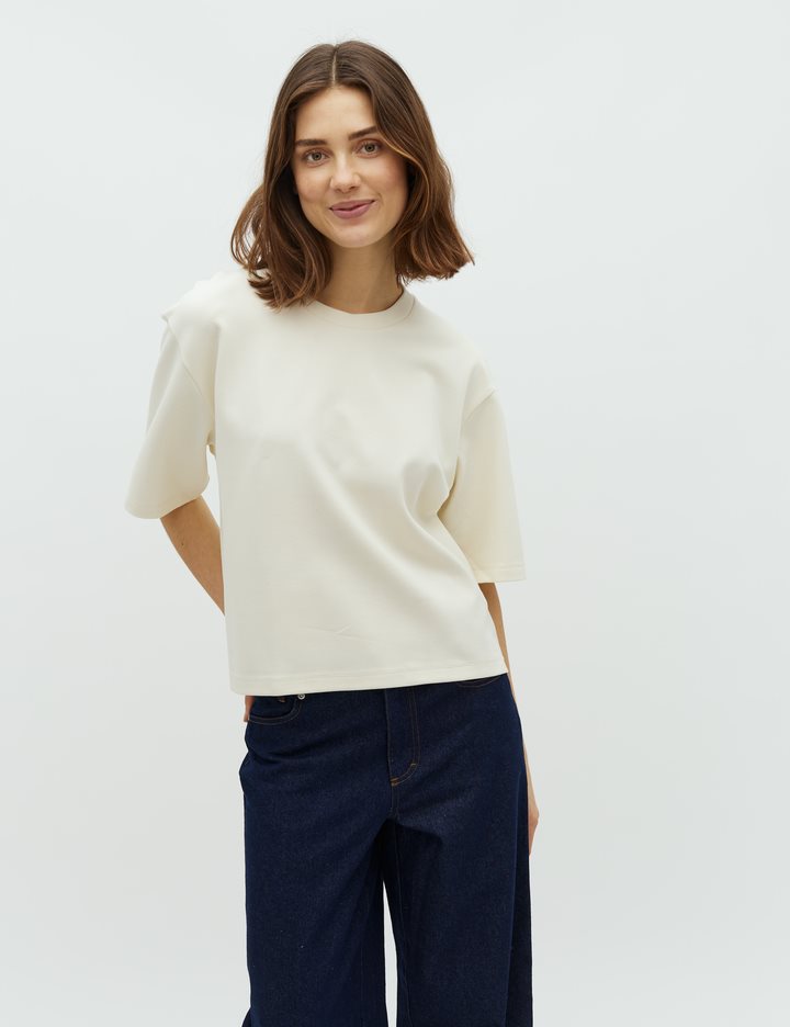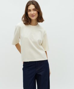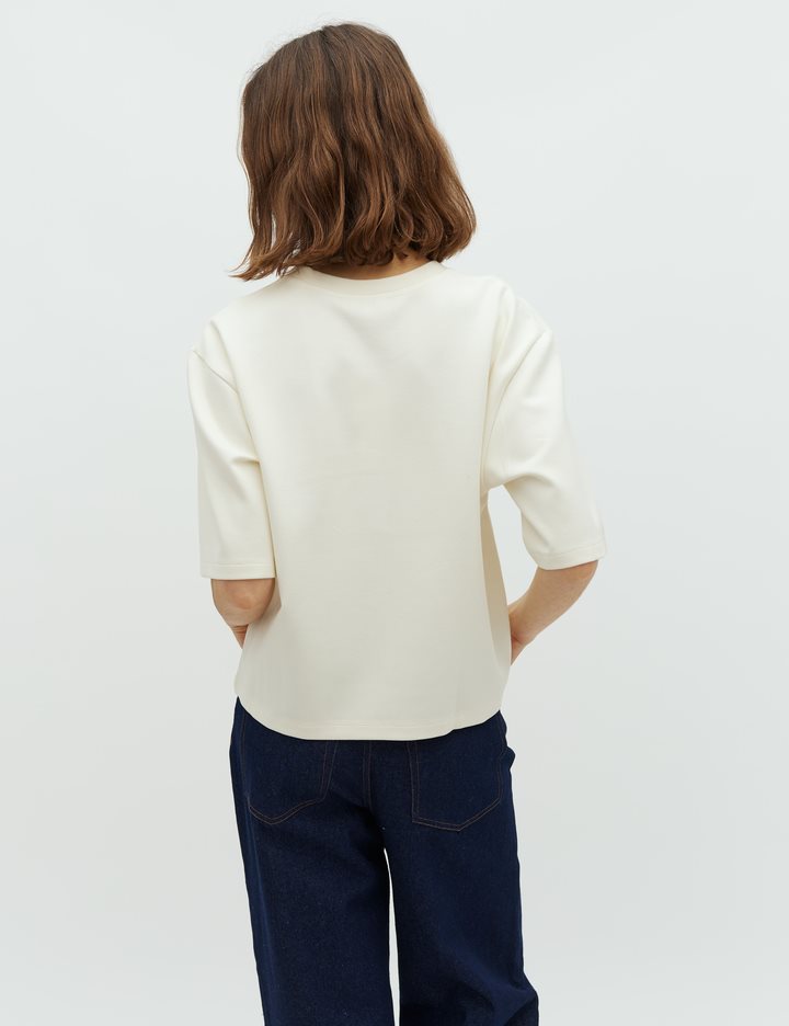 Loose fit t-shirt with short sleeves.- Material: 74% Viscose, 23% Polyamide, 3% Elastane- Short sleeves- Round neck- Loose fitThe height of the model is 175 cm and she is wearing a size S.