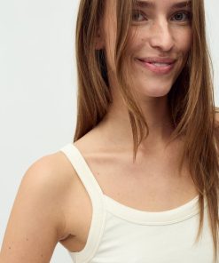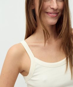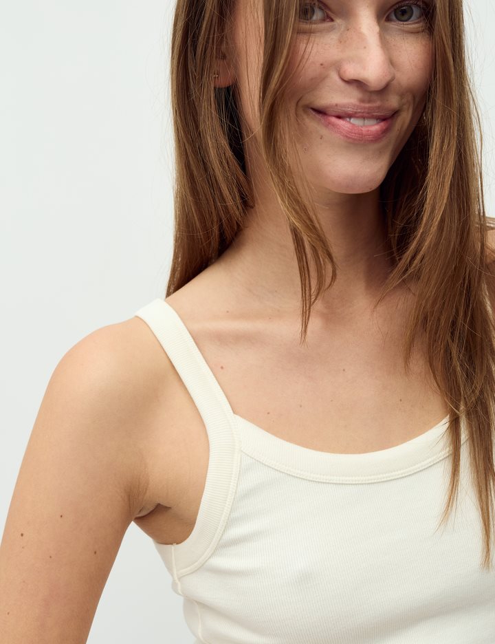 Round neck top- Material: 95% Cotton, 5% Elastane- Tight-fitting- Soft quality- StrapsThe model's height is 176 cm and she is wearing a size S.