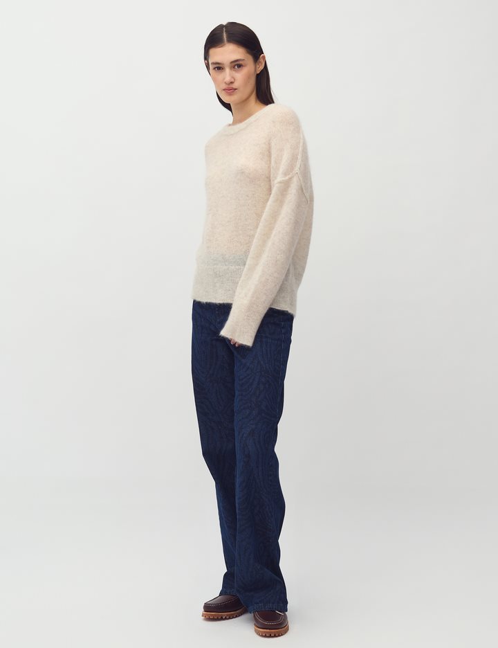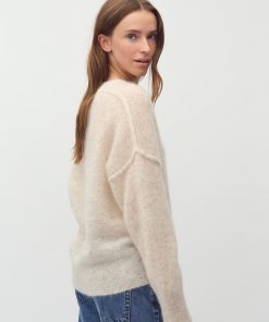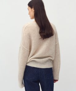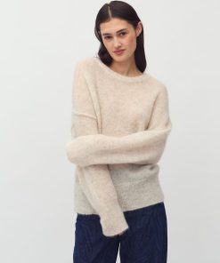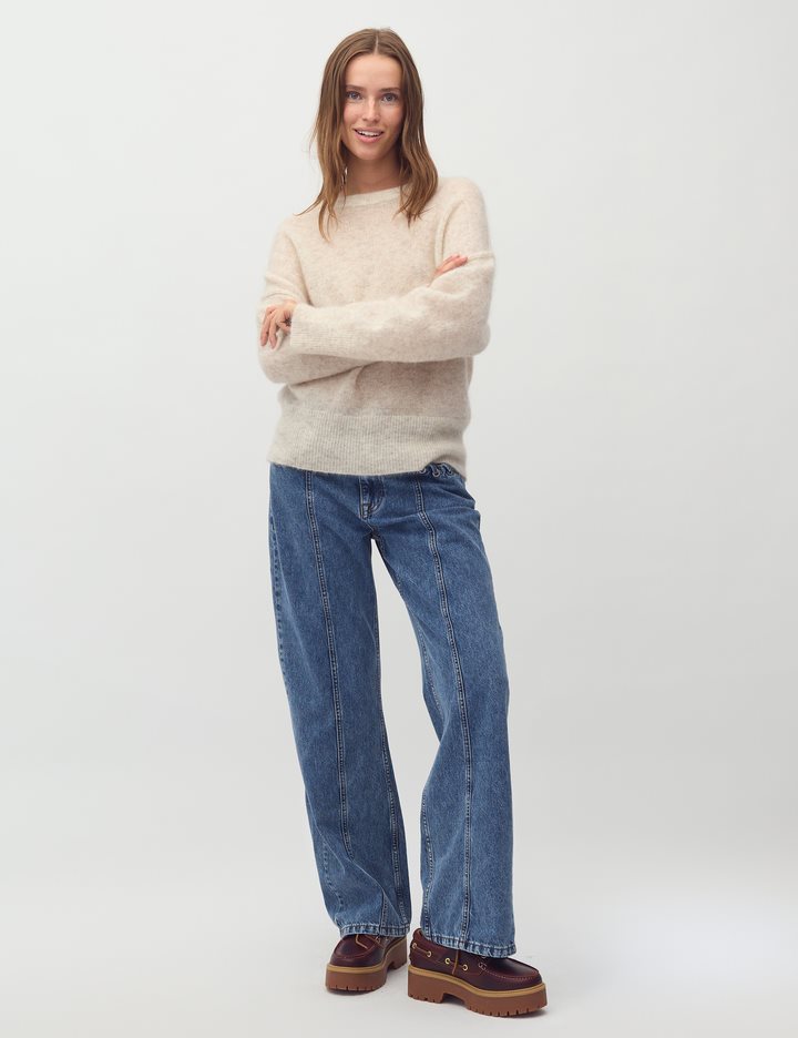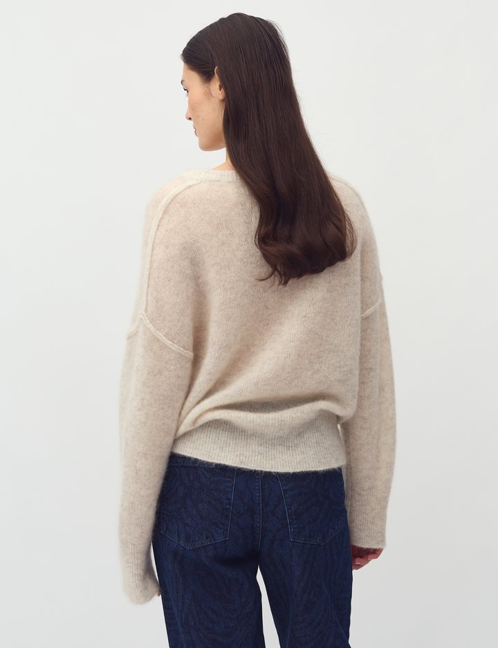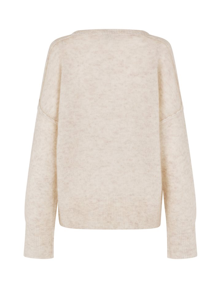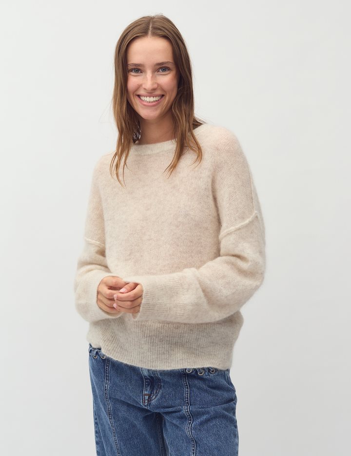 Long sleeve knit in wool- Material: 33% Nylon, 32% Wool, 32% Mohair, 3% Elastane- Round neckline- Long sleeves- Loose fit- Soft wool- Color: Oat MelangeThe model is 175 cm tall and is wearing size S