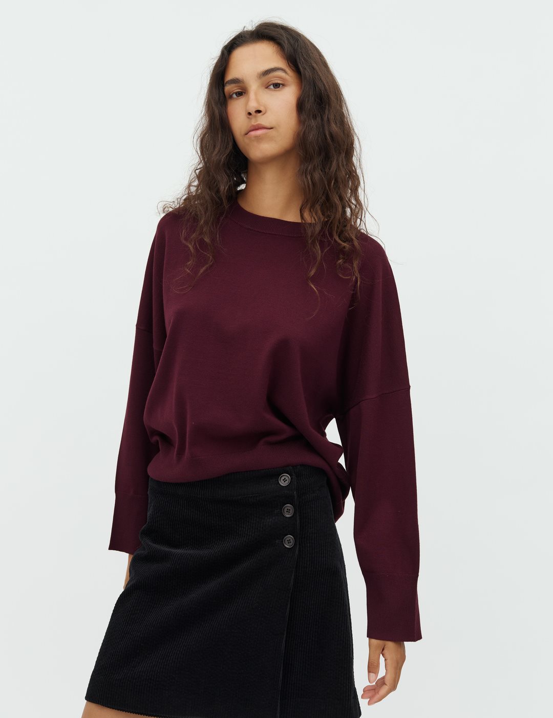 Oversize knit.- Material: 70% Viskose, 30% Polyester- Long sleeves- Soft material- Round neck- Loose fitThe height of the model is 176 cm and she is wearing a size S.