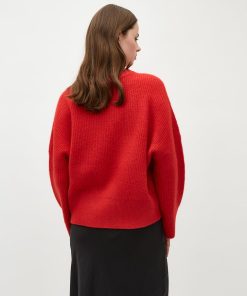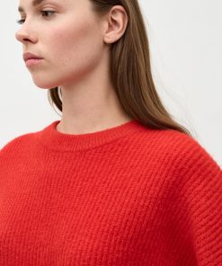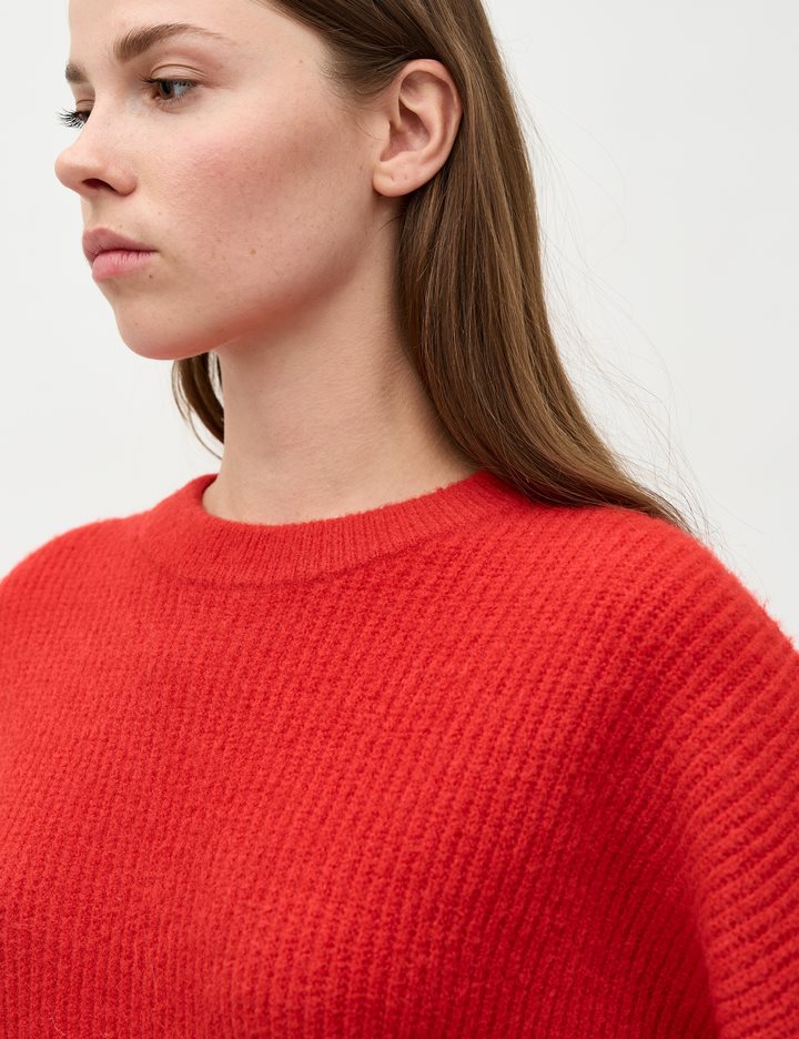 O-neck knit with drop shoulders.- Material: 68% Acrylic, 12% Polyester, 11% Nylon, 6% Wool, 3% Elastane- Long sleeves with drop shoulders- O-neck- Relaxed fit- Normal length- Soft quality- Color: Red Rose