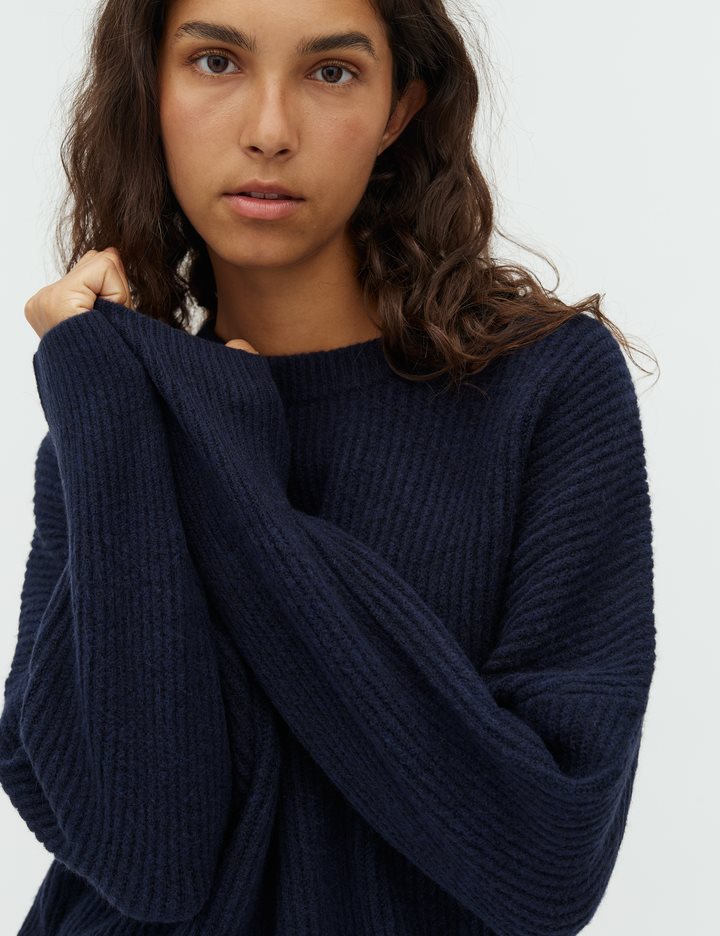Loose fit knit pullover.- Material: 51% Acrylic, 36% Nylon, 7% Elastane, 6% Wool- Long sleeves- Soft material- Round neck- Loose fitThe height of the model is 176 cm and she is wearing size S.