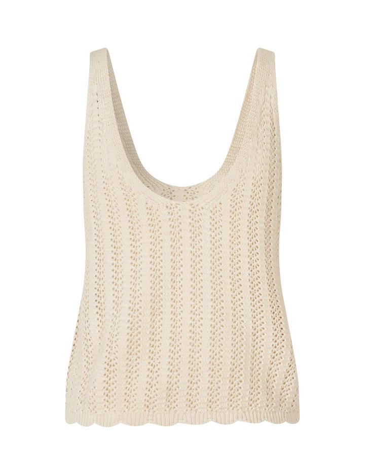 Knitted top with a deep neckline.- Material: 100% Cotton- Wide straps- Deep v-neckline- Relaxed fit- Wavy hemThe height of the model is 176 cm and she is wearing a size S.
