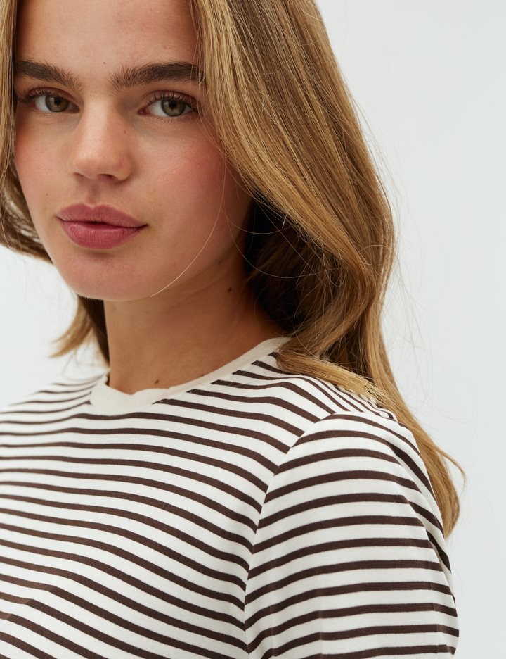 Striped crew neck t-shirt from mbyM.- Material: 95% TENCELâ„¢ Modal, 5% Elastane- Short sleeves- Round neck- Slim fit- Regular lengthThe model is 176 cm tall and is wearing a size S.