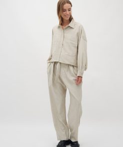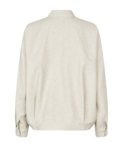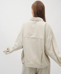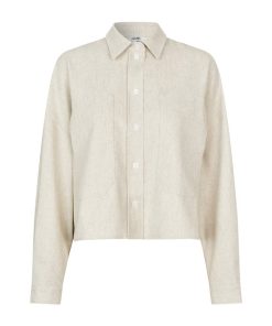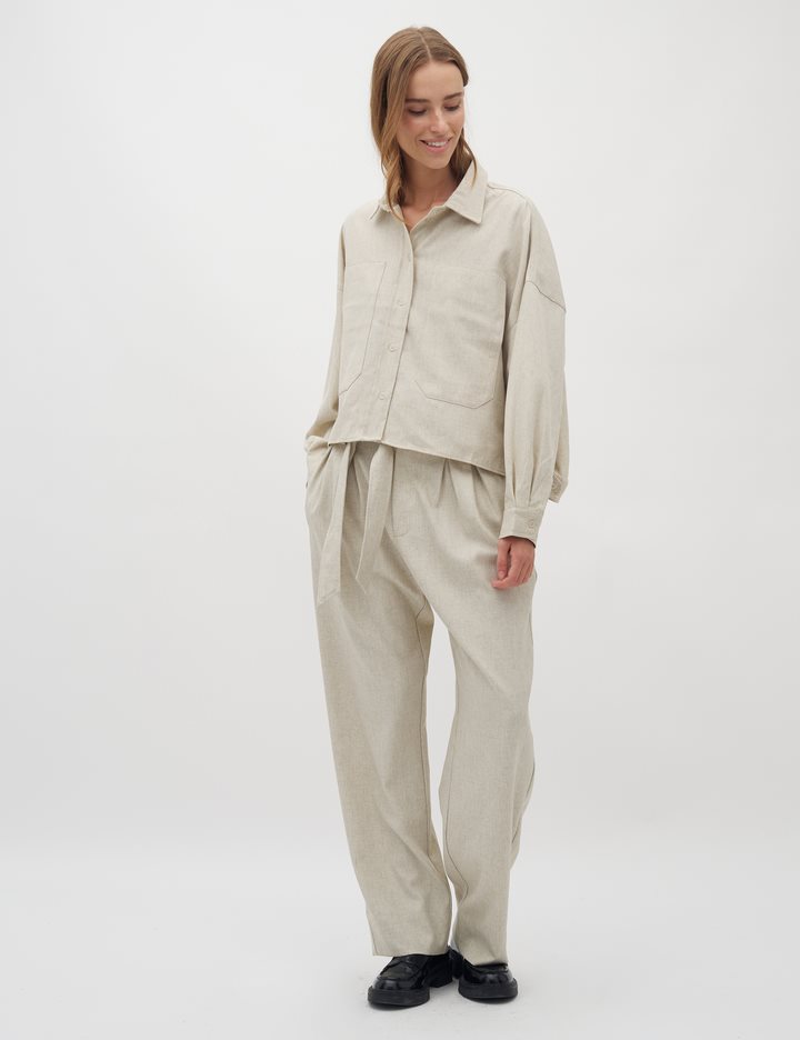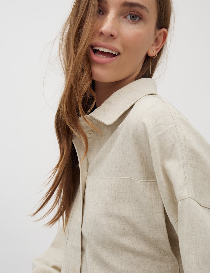 Shirt with side details.- Material: 89% Polyester, 7% Linen, 4% Elastane- Long sleeves with pleated details- Loose fit- Shirt collar- Large front pockets- Closes with buttons- Asymmetric lengths front/backThe height of the model is 176 cm and she is wearing a size s.