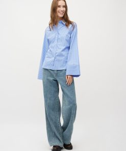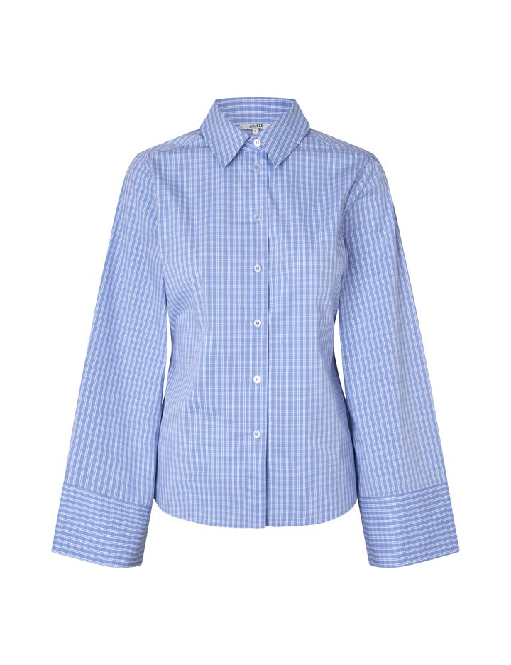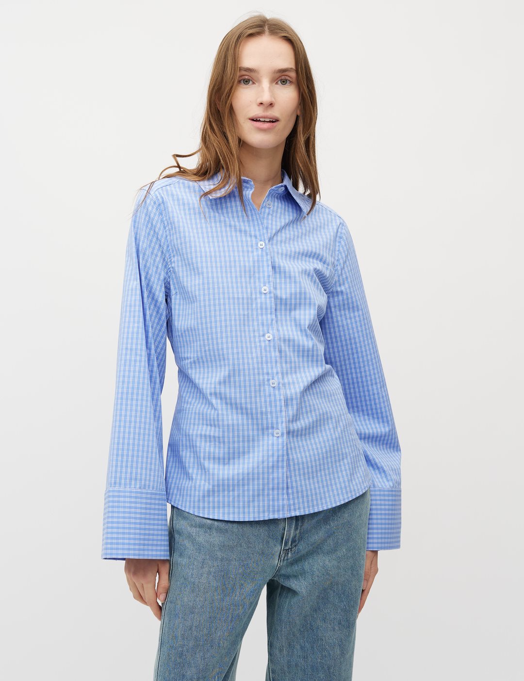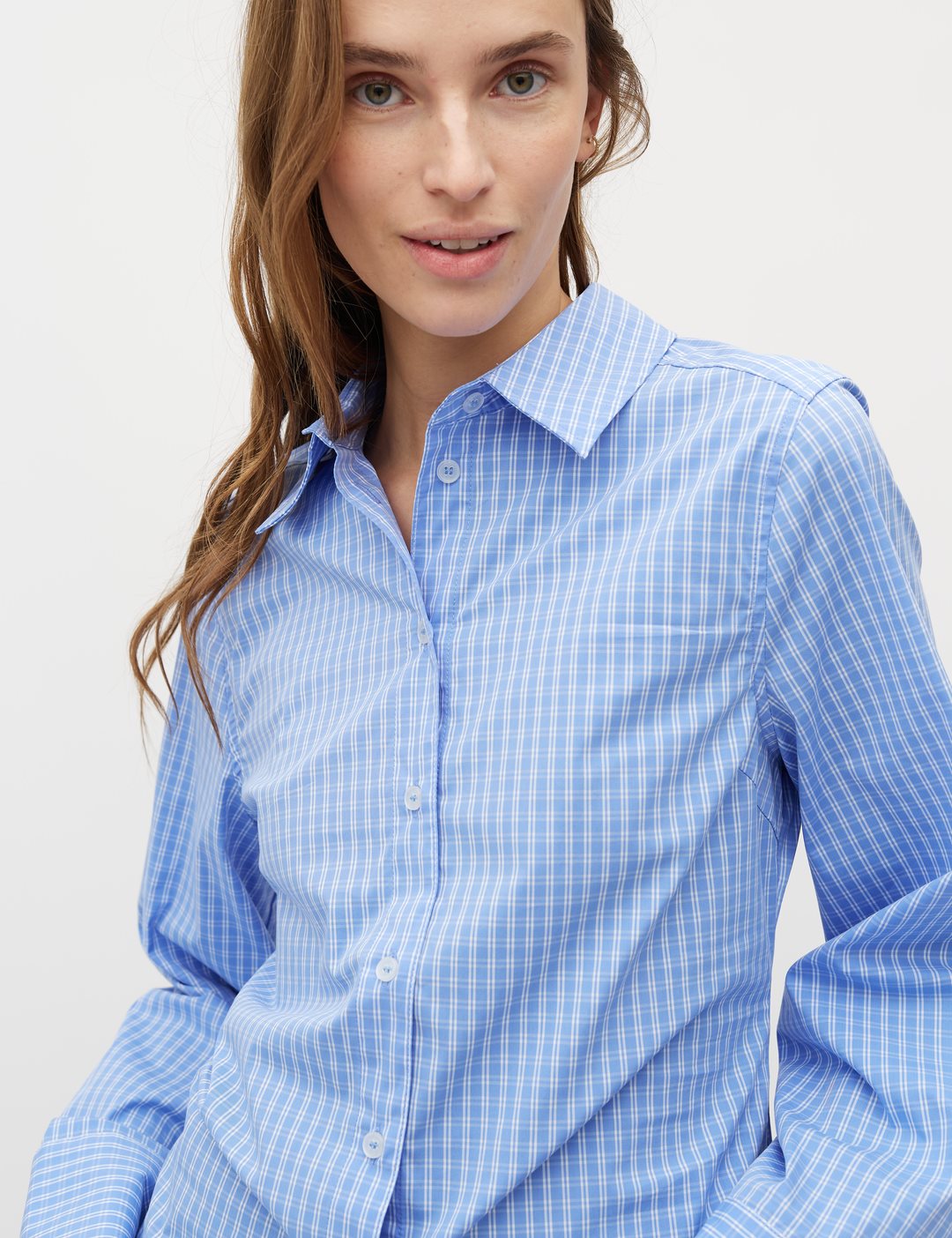 Slim fit shirt with check.- Material: 70% Cotton, 27% Polyester, 3% Elastane- Long sleeves with width- Slim fit- Regular length- Button closure- Shirt collar- Detail on the back- CheckThe model's height is 176 cm and she is wearing a size S.