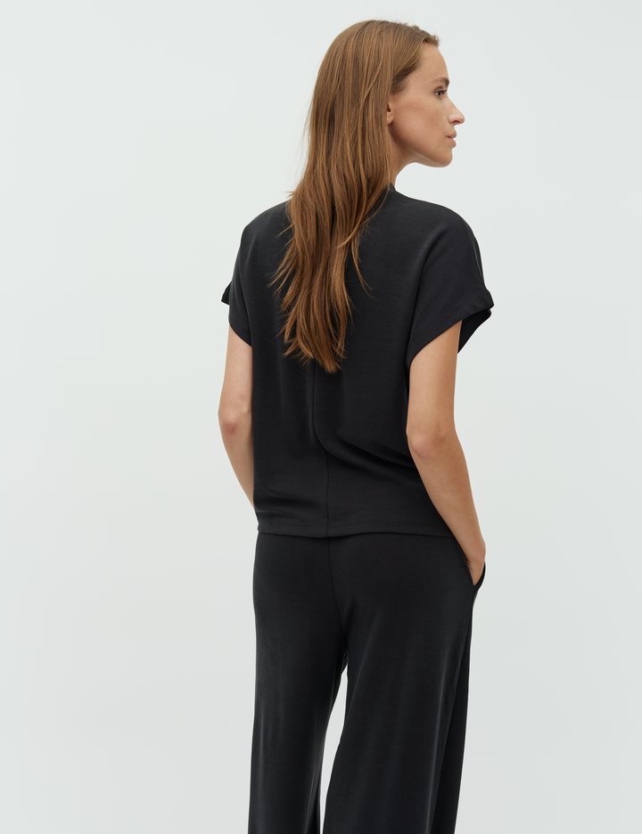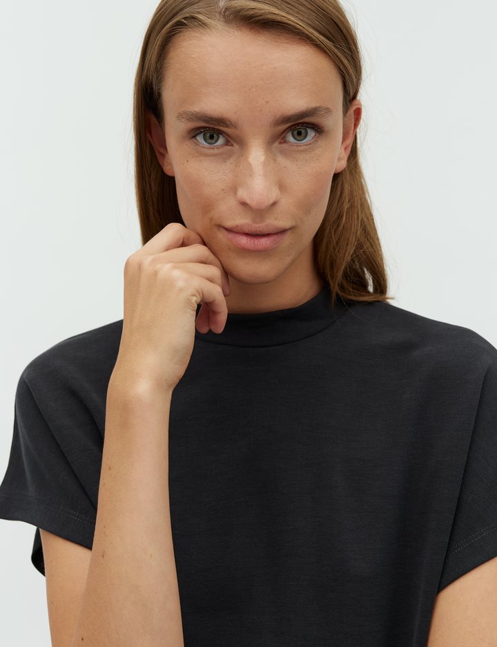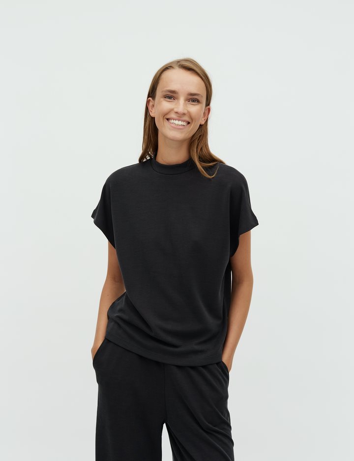 Top with a high neck and in a soft quality. – Material: 80% Modal, 20% Polyester- High neck- Closes at the neck with a button- Loose fit- Soft qualityThe model's height is 176 cm and she is wearing size S.