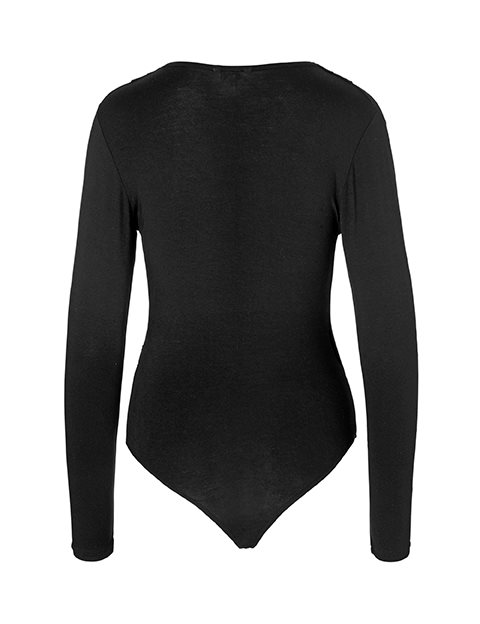 Feminine and simple body in a cozy quality. This bodystocking has long sleeves and a deep v-neck. The top is perfect for any occasion and it can be styled for different looks.Material:5% Elastane95% TENCELâ„¢ ModalThe height of the model is 176 cm. and she is wearing a size S.