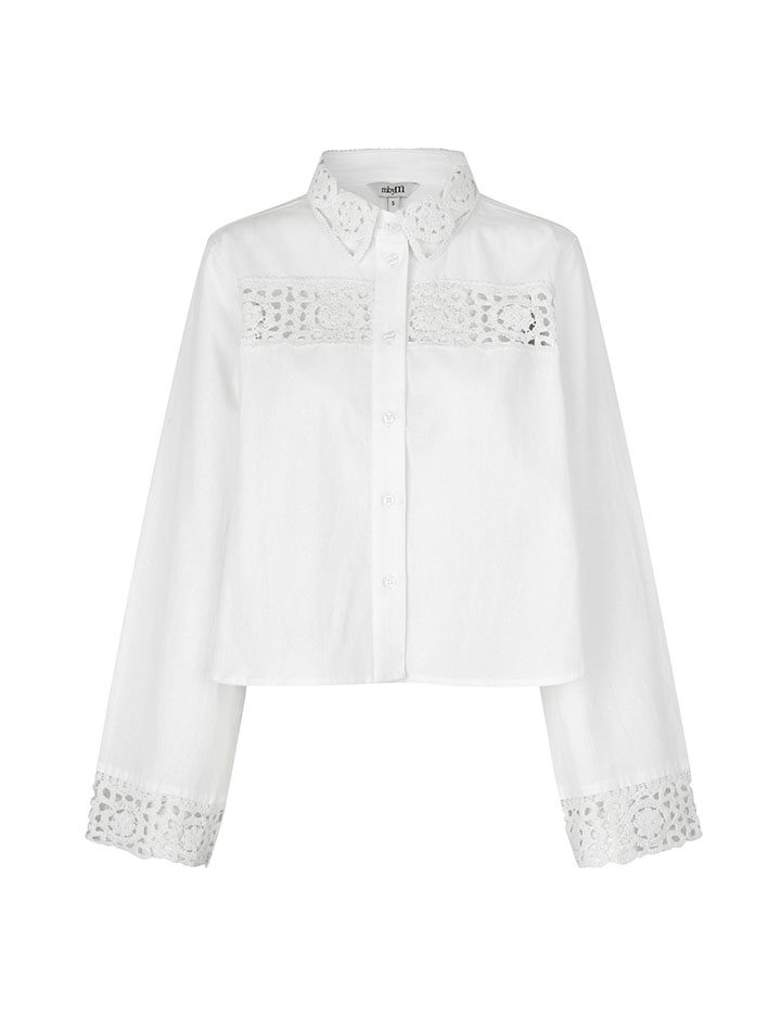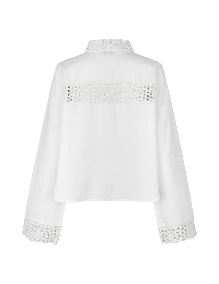 Woven shirt with crochet lace detail.- Material: 100% Cotton- Long sleeves with lace detali- Crochet lace detail on chest- Button closure- Shirt collar- Normal length- Relaxed fit