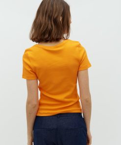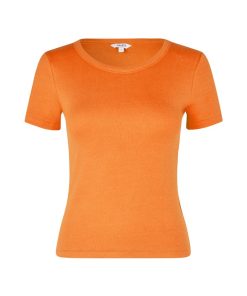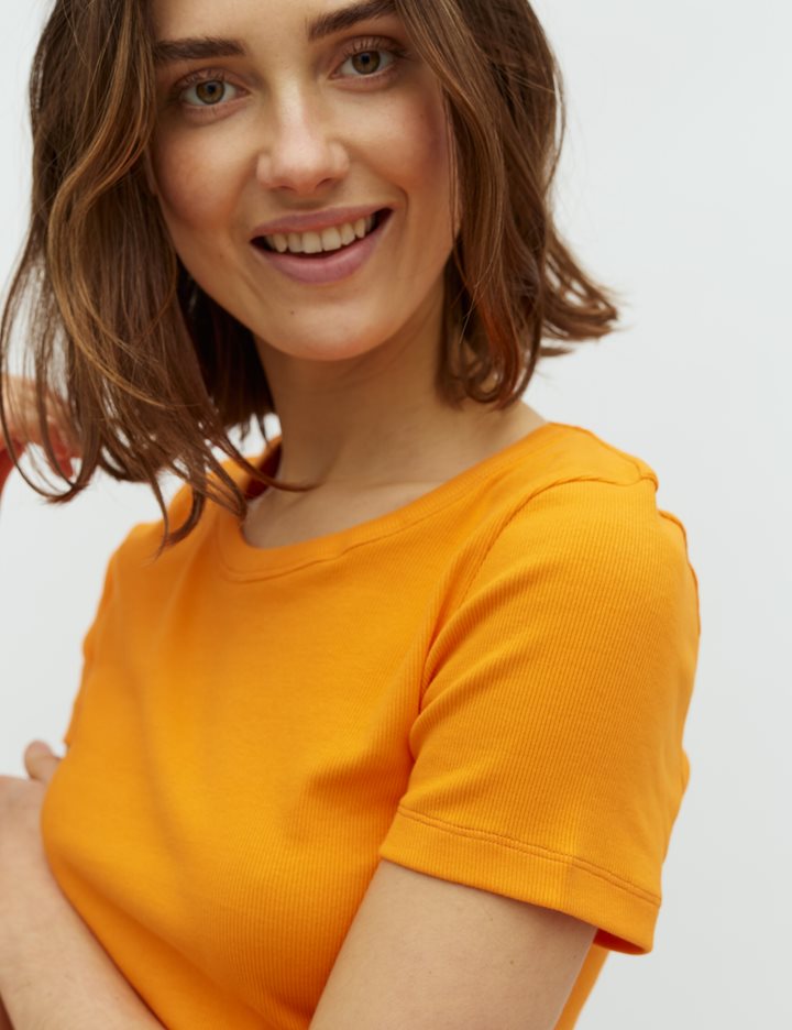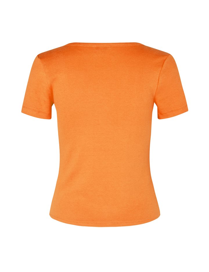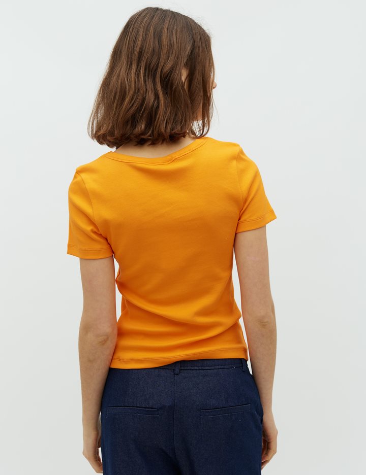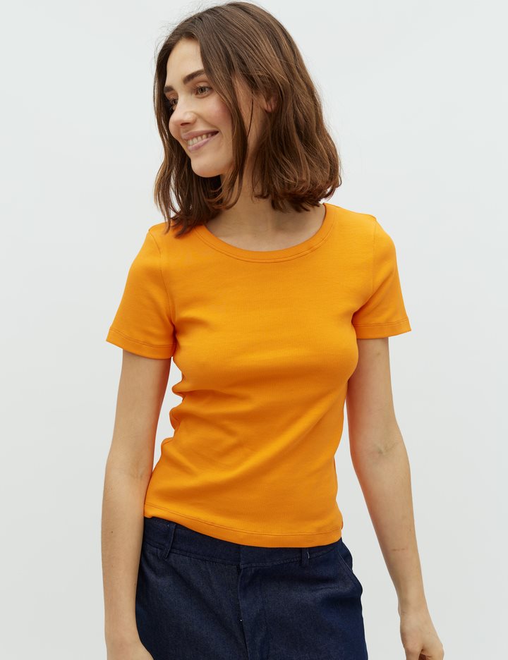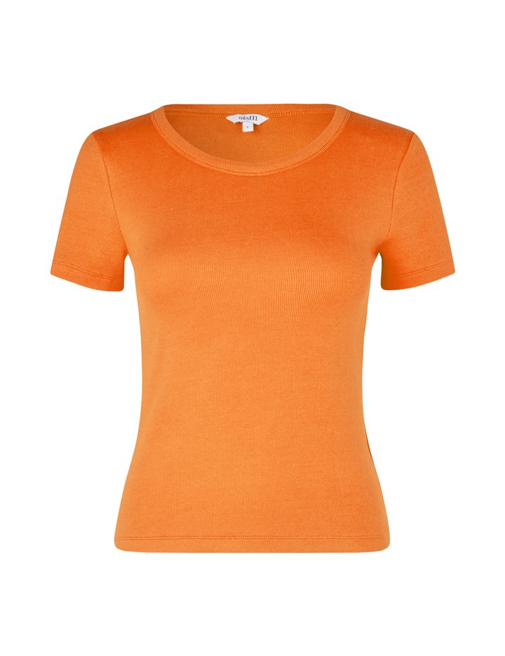 Simple t-shirt in a ribbed quality- Material: 95% Cotton, 5% Elastane- Round neckline- Short sleeves- Tight fitting- Rib quality