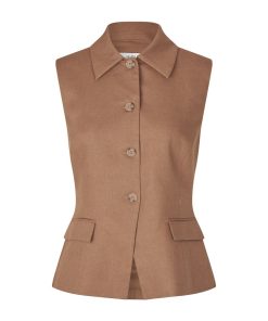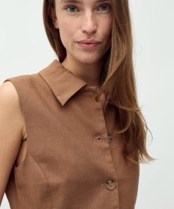 Vest with buttons.- Material: 55% Linen, 45% Viscose- Shirt collar- Closes with buttons- Figure-shaped- Pockets on the frontThe model's height is 176 cm and she is wearing a size S.