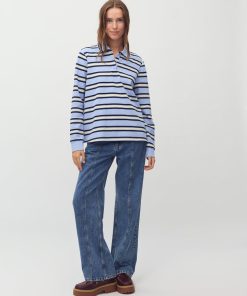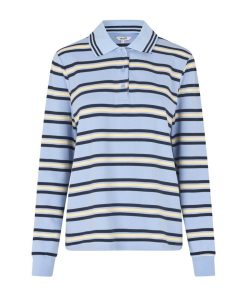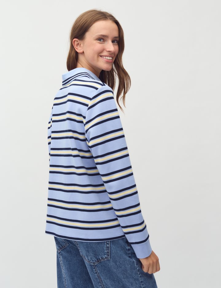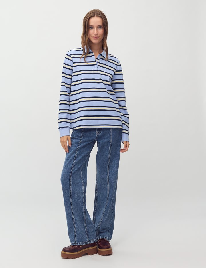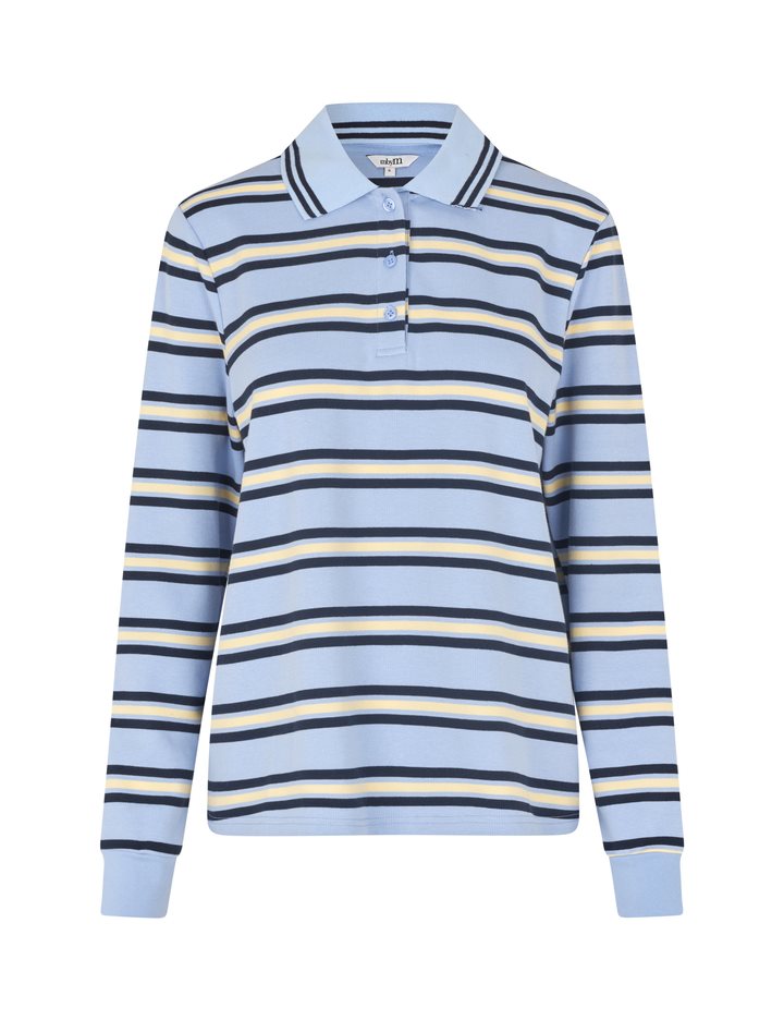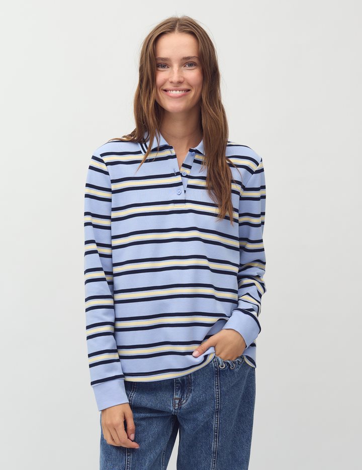 Striped polo shirt.- Material: 65% Polyester, 35% Cotton- Long sleeves- Collar- Buttons- Relaxed fitThe height of the model is 176 cm and she is wearing a size S.
