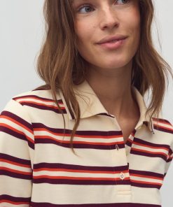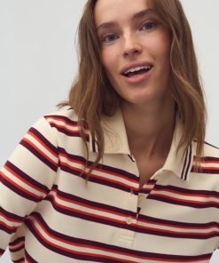 Striped polo shirt.- Material: 65% Polyester, 35% Cotton- Long sleeves- Collar- Buttons- Relaxed fitThe height of the model is 176 cm and she is wearing a size S.