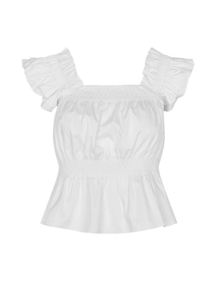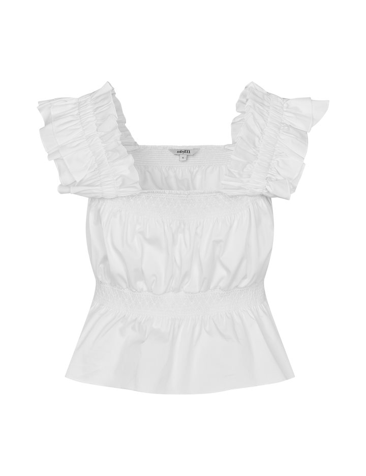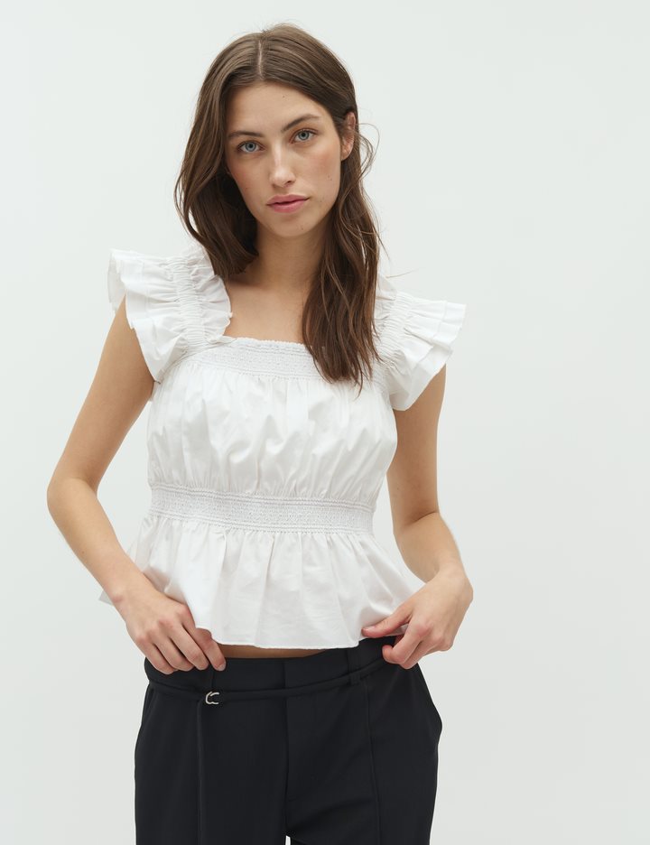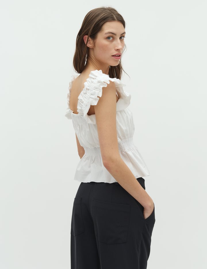 Feminine top with fine details.- Material: 70% Cotton, 27% Nylon, 3% Elastane- Wide straps- Square neckline- Wide bottom- Smock effectThe model's height is 176cm and she is wearing a size S.
