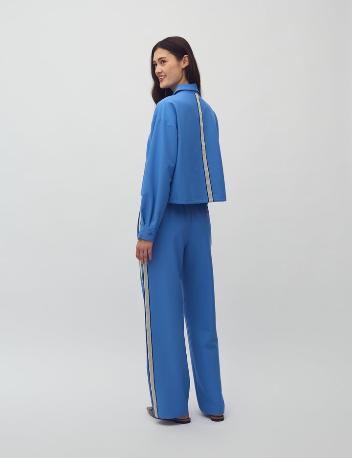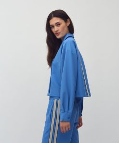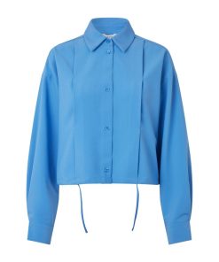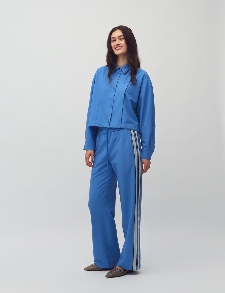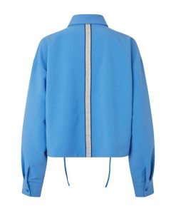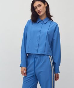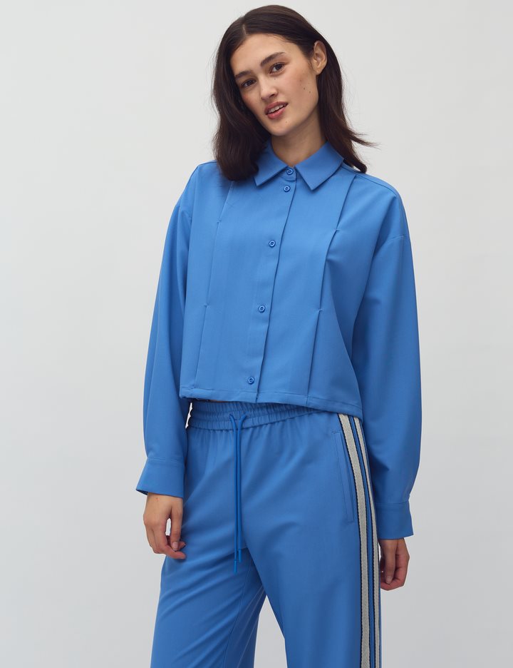 Shirt blouse in athleisure look.- Material: 75% Polyester, 20% Viscose, 5% Elastane- Long sleeves with button cuffs- Shirt collar- Stripe on the back- Boxy, loose fit- Short length- Pleated details at the front- Ties at the bottomThe model's height is 176 cm and she is wearing a size S.